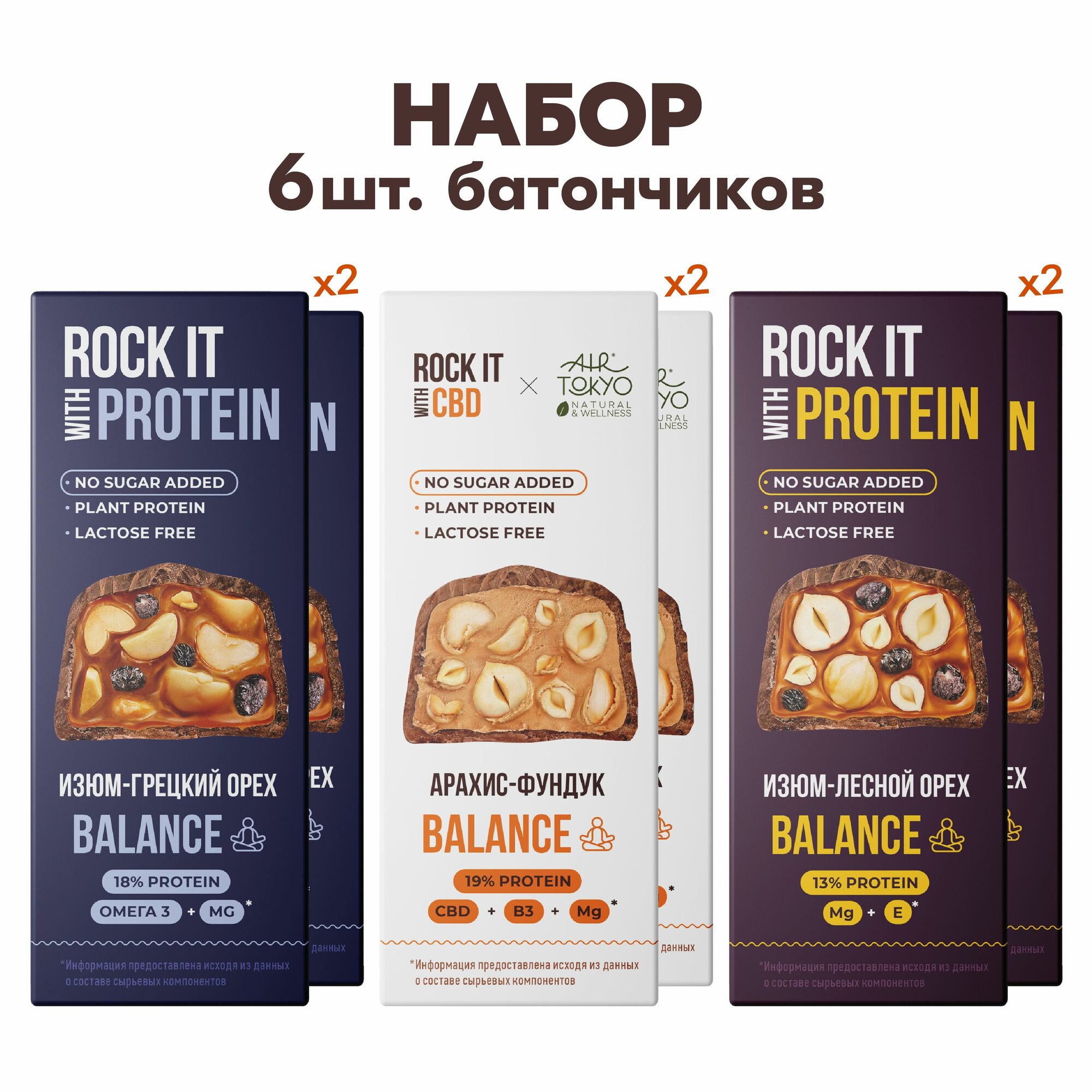 Батончики протеиновые без сахара, без лактозы, ассорти 6 шт. "Полезный перекус - Баланс", ROCK IT WITH, 40 г. интересное: