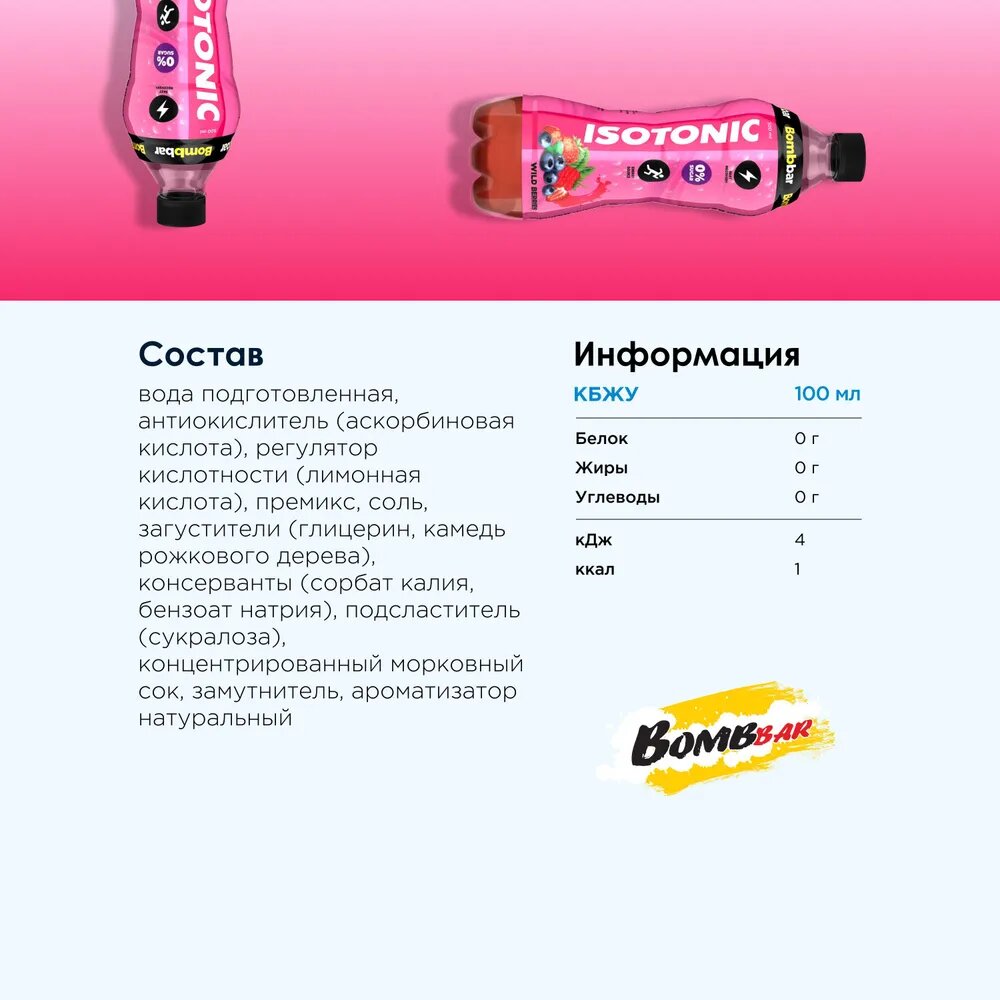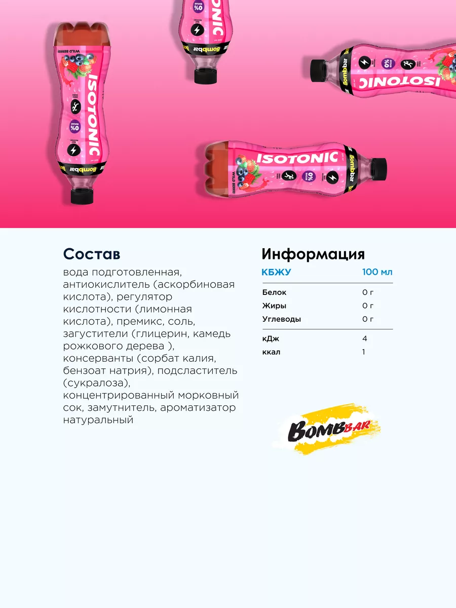Напиток безалкогольный негазированный со вкуом "Лесные ягоды". "Изотоник", TM "Bombbar" интересное: