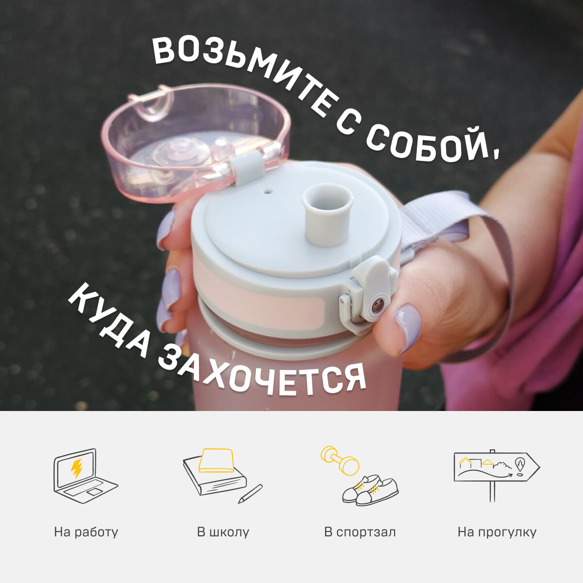 Бутылка для воды спортивная 500 мл/женская в подарок/розовая с ремешком