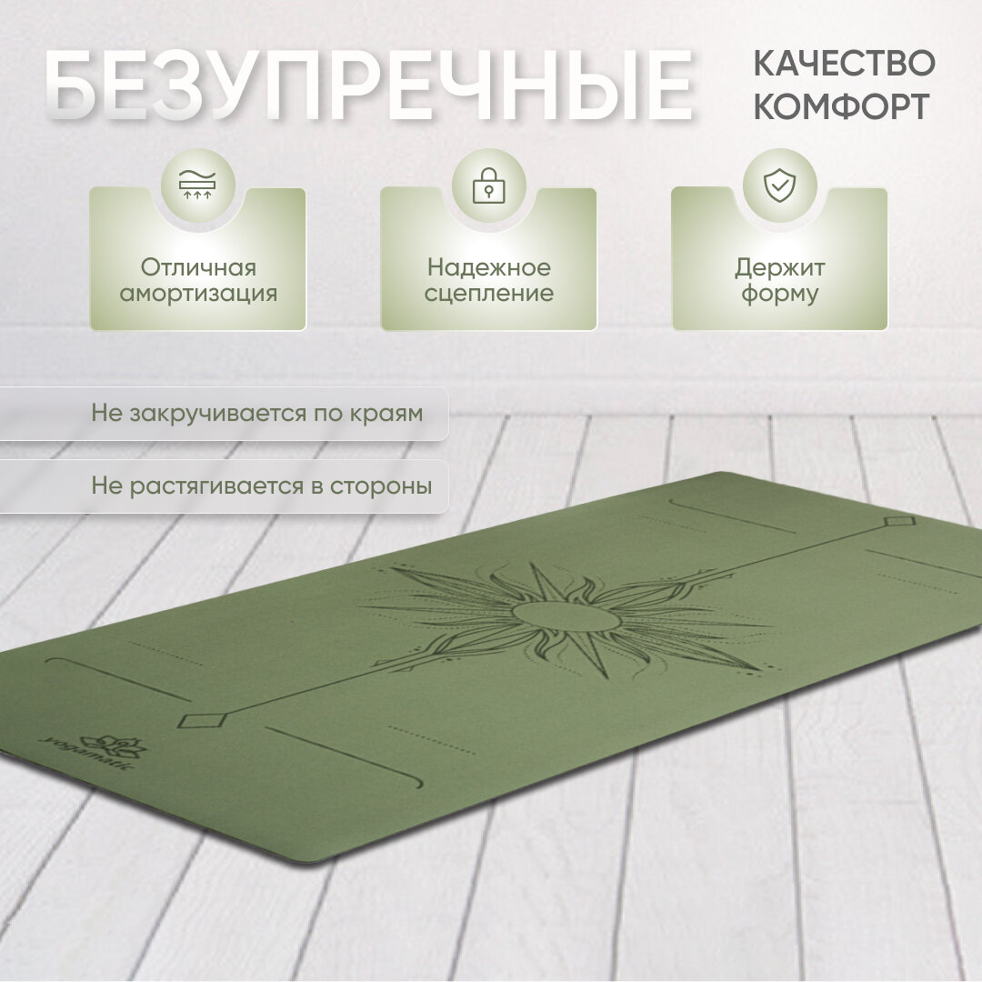 СохранитьКоврик для йоги и фитнеса каучуковый нескользящий с чехлом Арт Йогаматик Sun Olive Premium Light 185x68x0.4 см оливковый интересное: