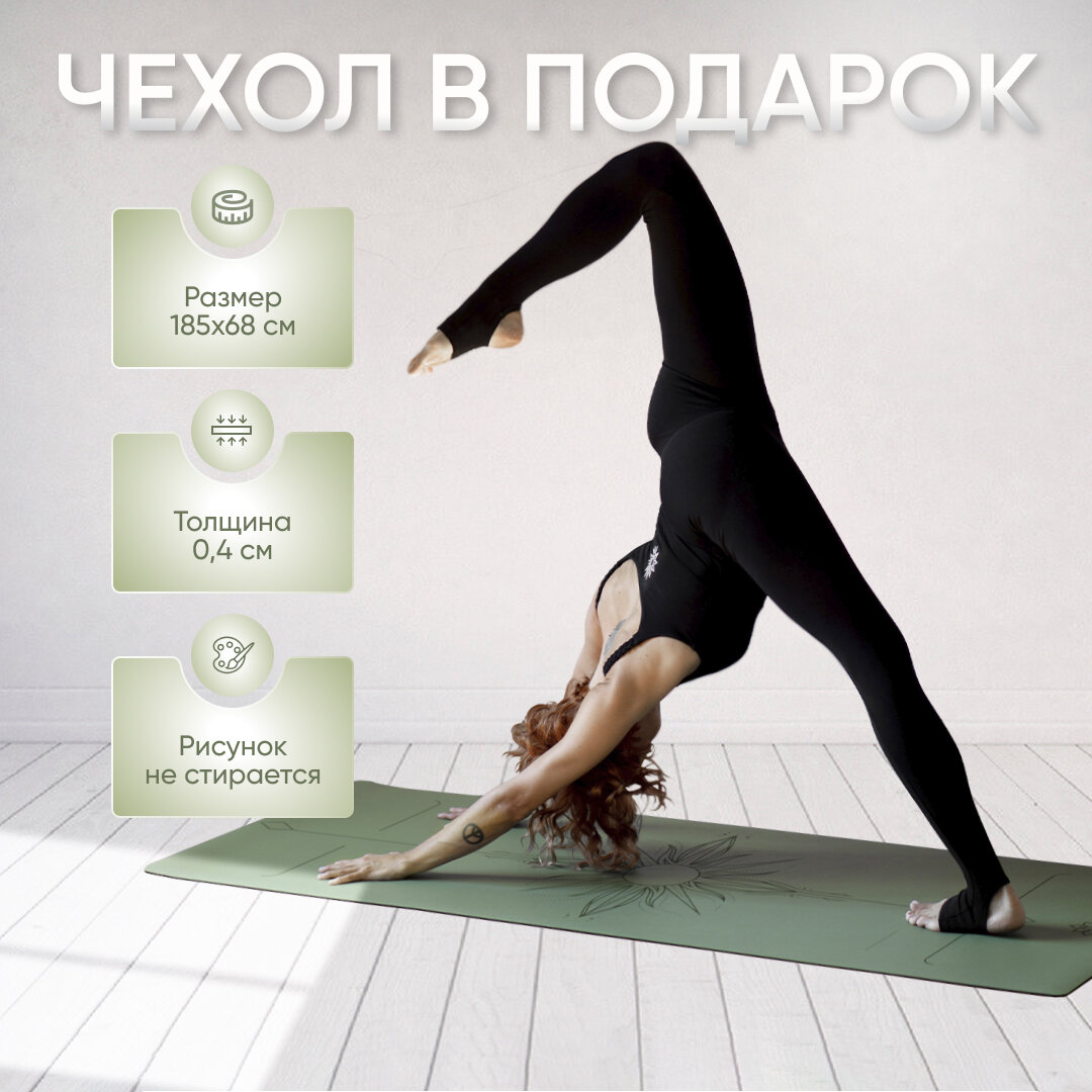 Купить Коврик для йоги и фитнеса каучуковый нескользящий с чехлом Арт Йогаматик Sun Olive Premium Light 185x68x0.4 см оливковый