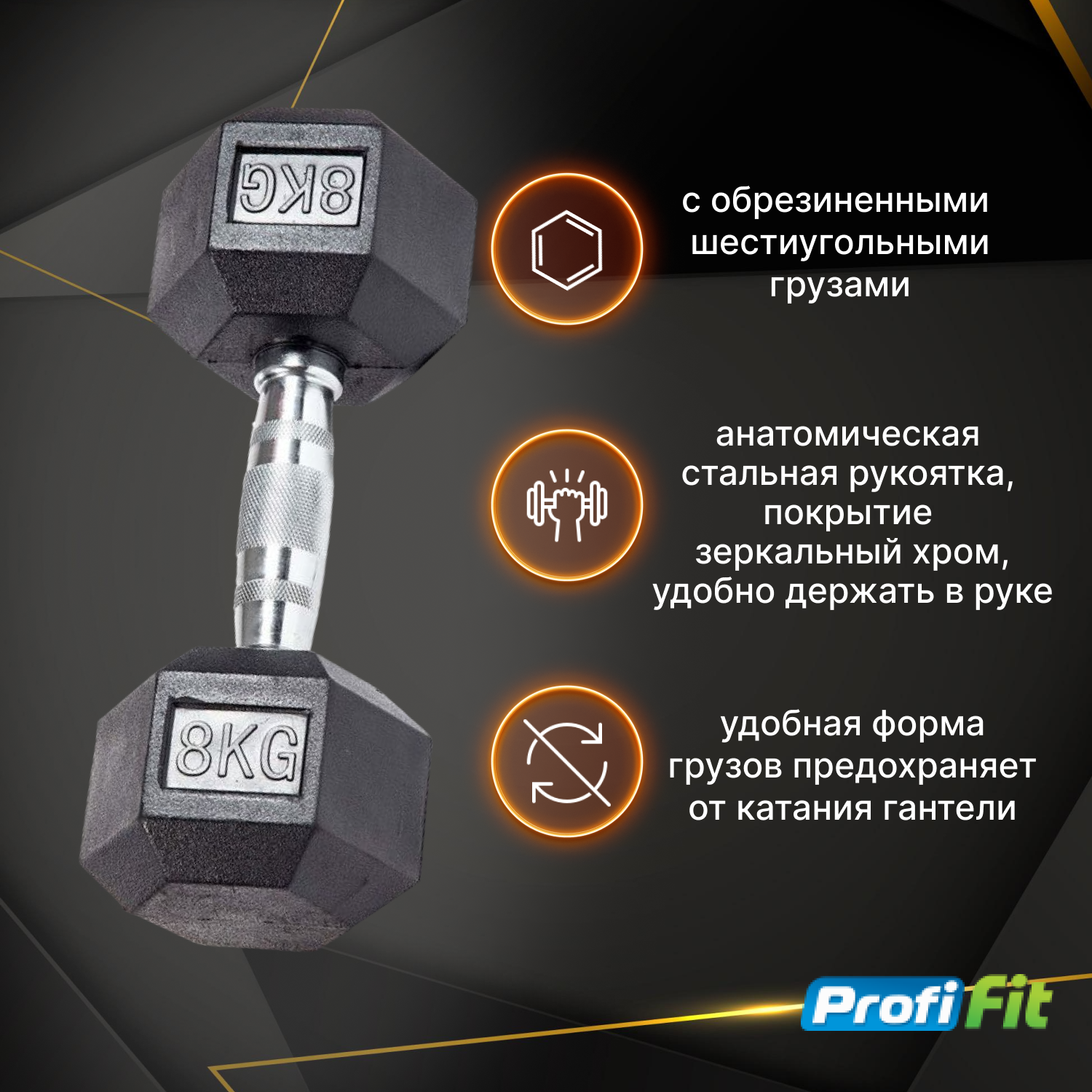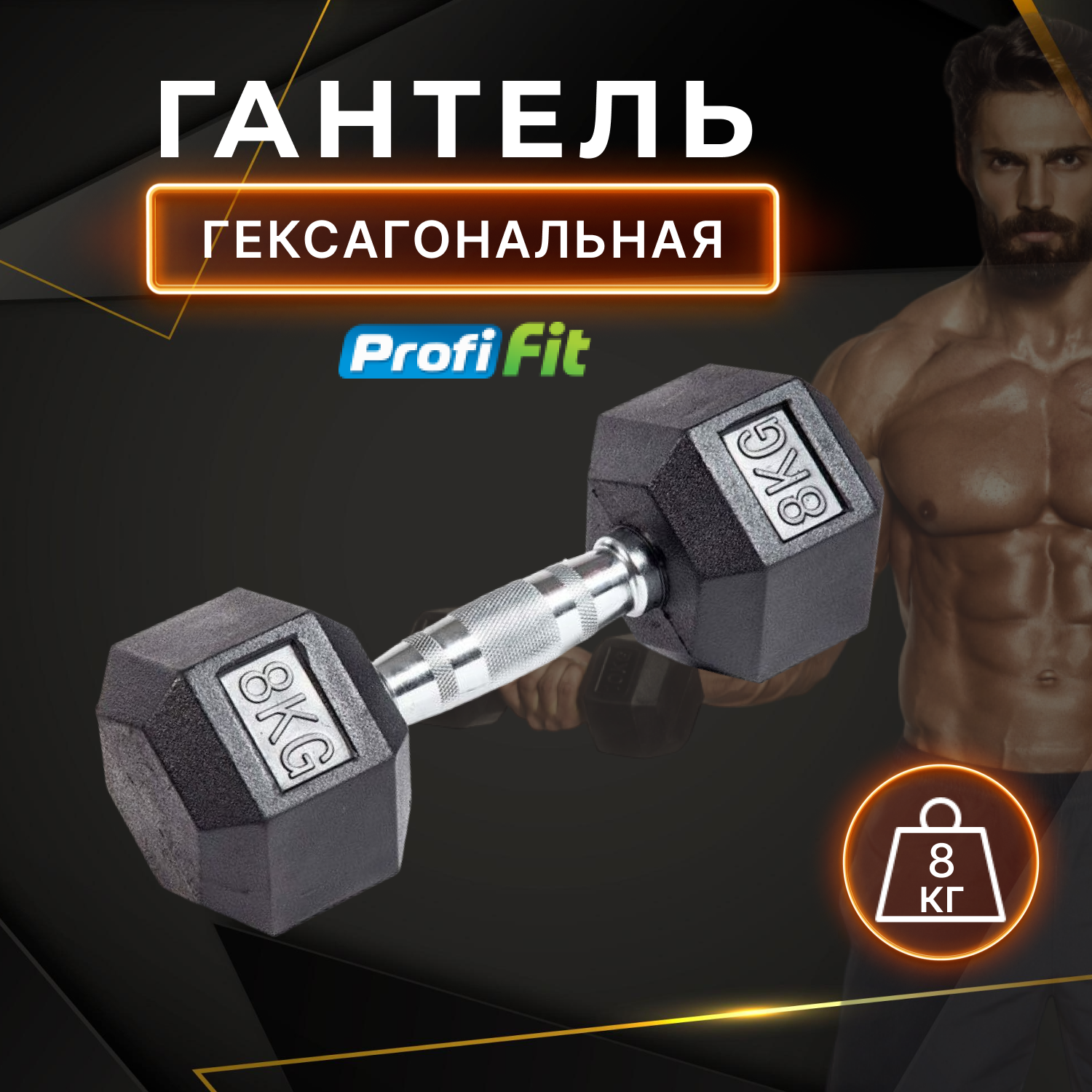 Гантель гексагональная обрезиненная PROFI-FIT 8 кг