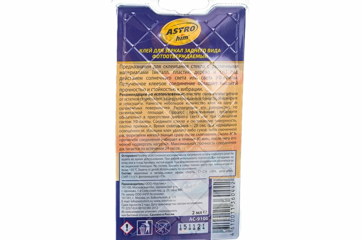 Клей для зеркала заднего вида ASTROHIM фотоотверждаемый 2 мл AC9100 интересное: