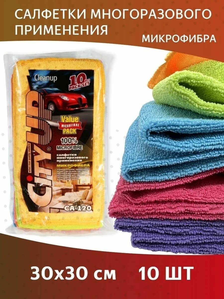 Салфетка микрофибра 30х30 CityUp CA-120 разноцветные 10 шт автомобильные и бытовые интересное: