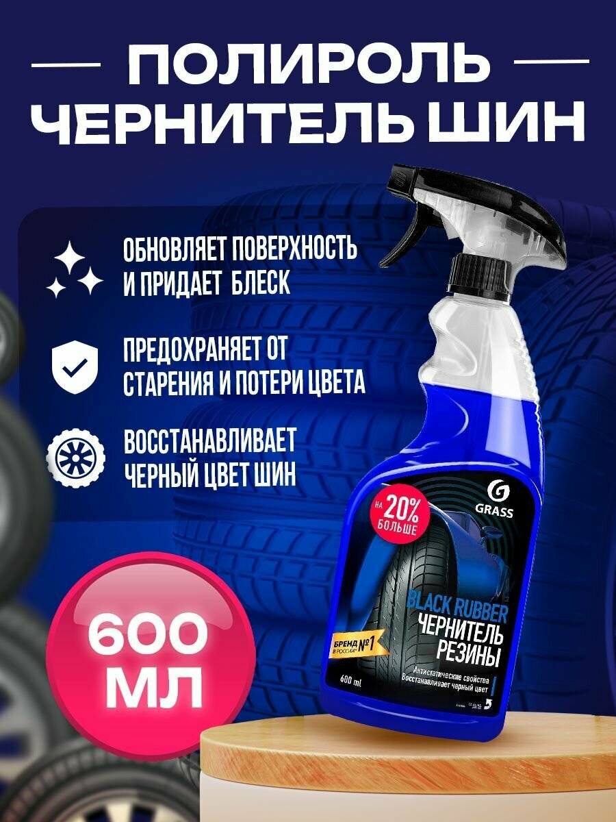 Чернитель резины 600мл - Black Rubber: готовое к применению средство на водной основе для очистки и полировки шин и других резиновых деталей авто, триггер-спрей GRASS 110384 | цена за 1 шт интересное: