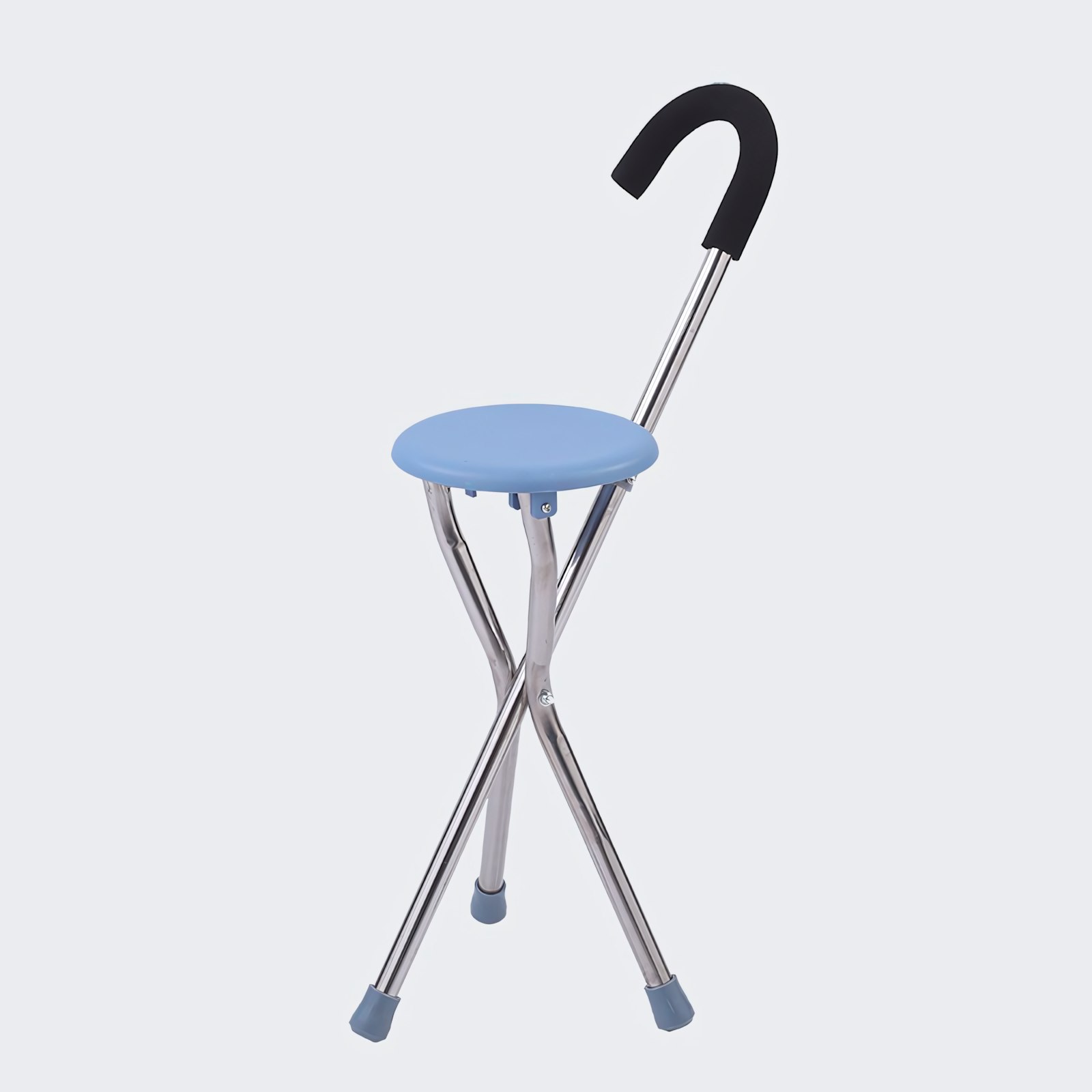 Купить Трость-стул складной, регулировка по высоте, нагрузка до 200 кг, голубой, круглое сиденье