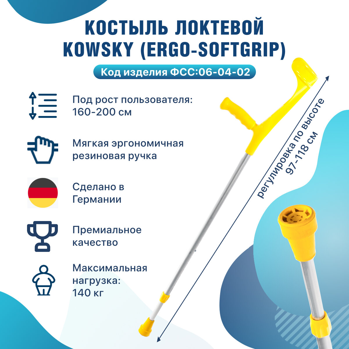 Ниже Вы можете прочитать отзывы на Костыль локтевой с мягкой ручкой желтый взрослый Kowsky 222KL-Standart Ergo-Softgrip с опорой под локоть, ознакомится с подробными характеристиками, посмотреть интересные обзоры и фотографии на Костыль локтевой с мягкой ручкой желтый взрослый Kowsky 222KL-Standart Ergo-Softgrip с опорой под локоть.