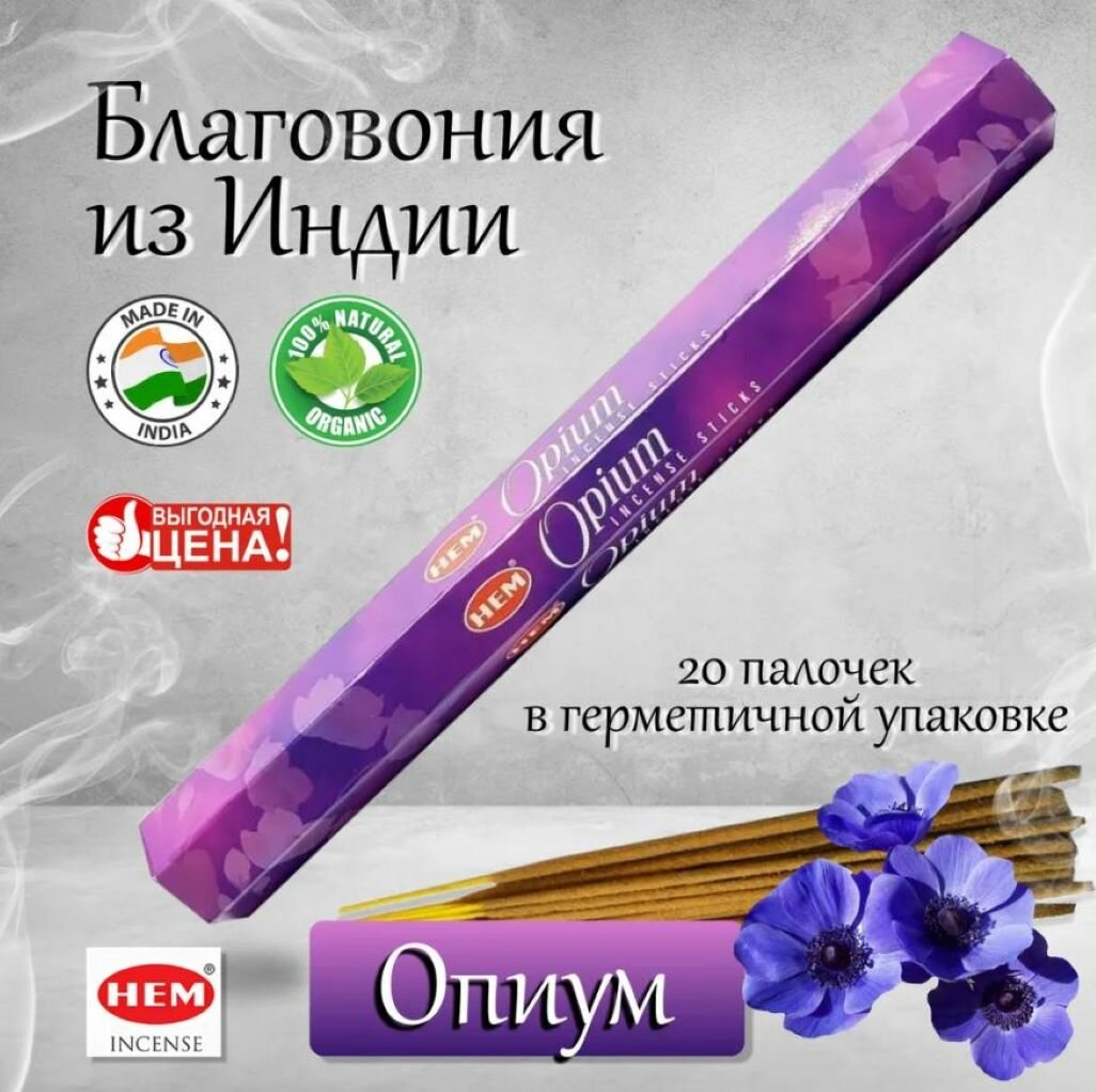 Благовония HEM Opium "Опиум" мак, 20 палочек интересное: