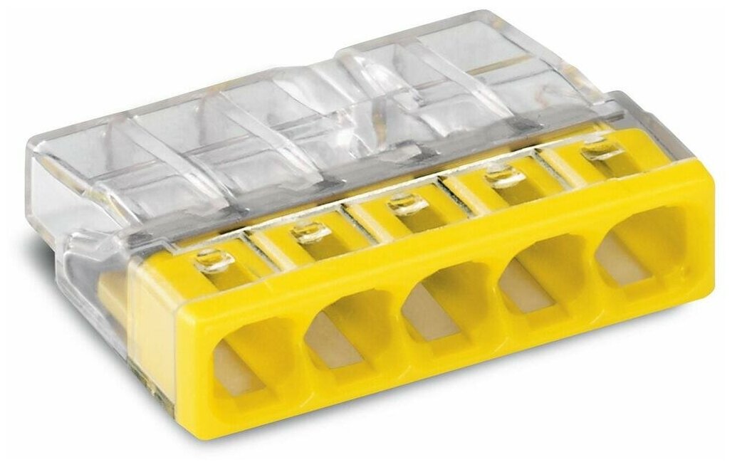 Соединительные клеммы WAGO COMPACT 2273-205 для одножильных проводников, макс. 2,5 мм, 5-проводн,прозрачный корпус, желтая крышка, прозрачные 100 шт/упак