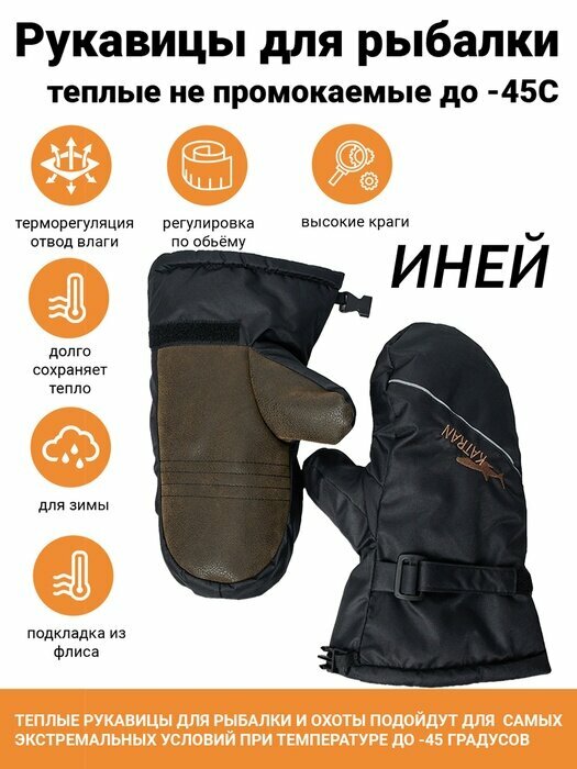 Рукавицы зимние для рыбалки и охоты KATRAN иней (Таслан, коричневый/чёрный) до -45С интересное: