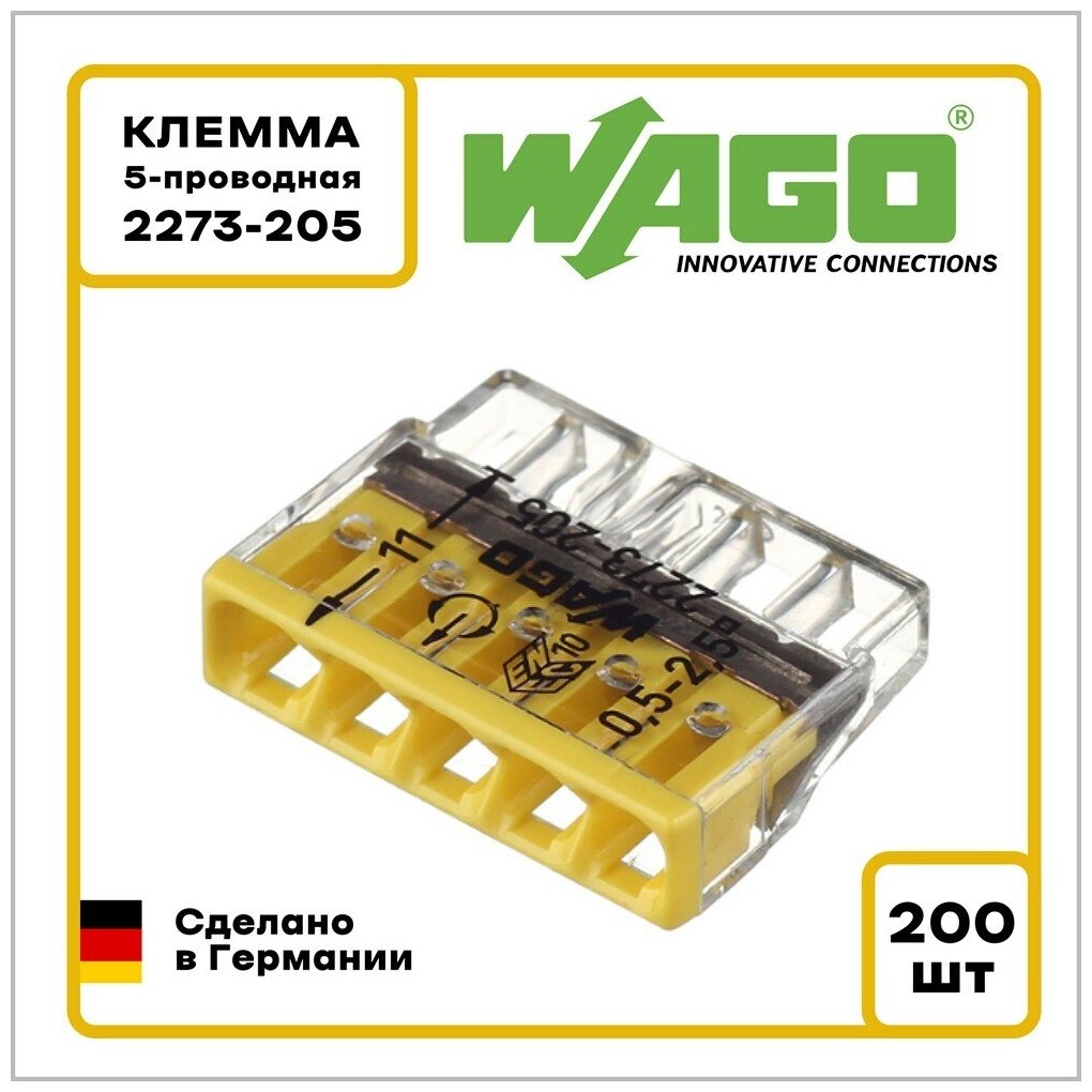 Клеммник WAGO пятерная (одножильных) х 0,5-2,5 мм2 24A Cu 2273-205 (комплект 200шт)