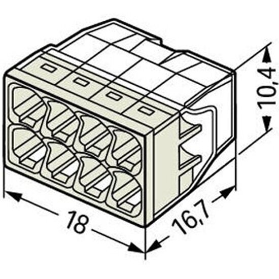 Клемма Wago 2273-248, длина 50мм, ширина 90мм, 8 контактов, 0.5-2.5мм2, 50шт