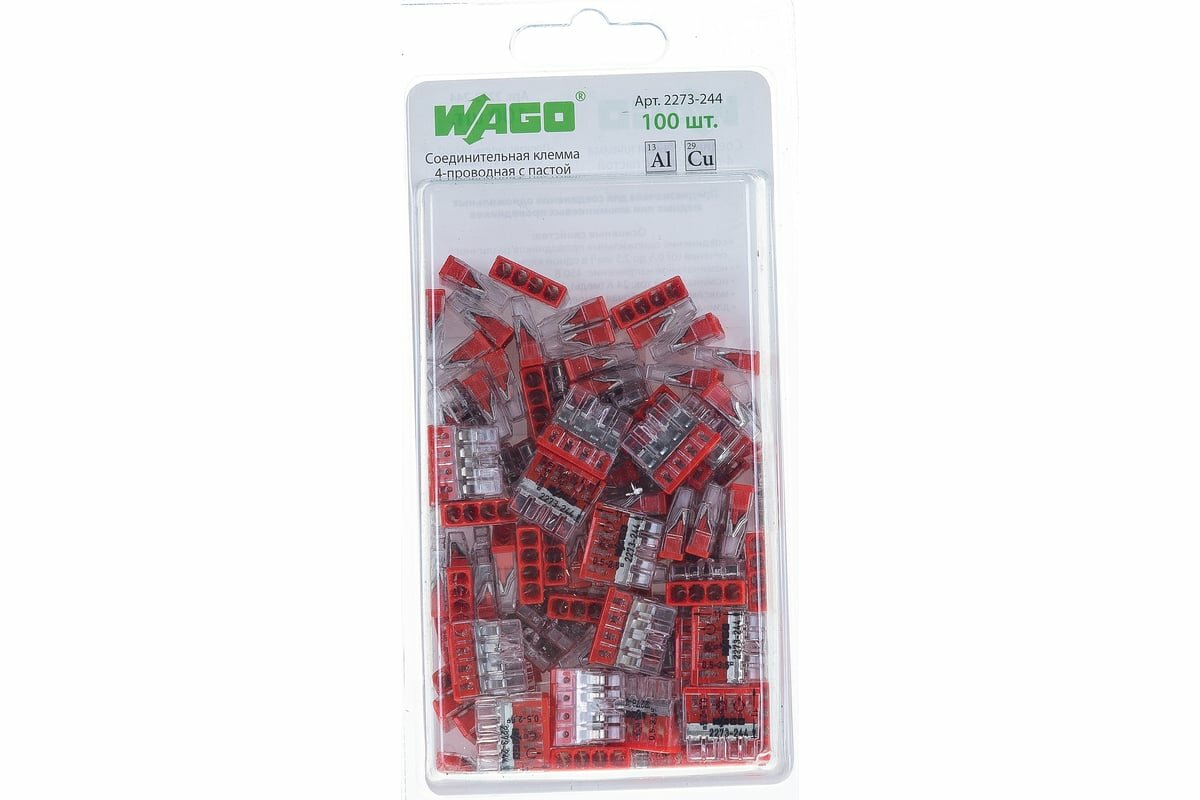 Клеммы Wago 2273-244 с контактной пастой, 4 контакта, 100 шт.