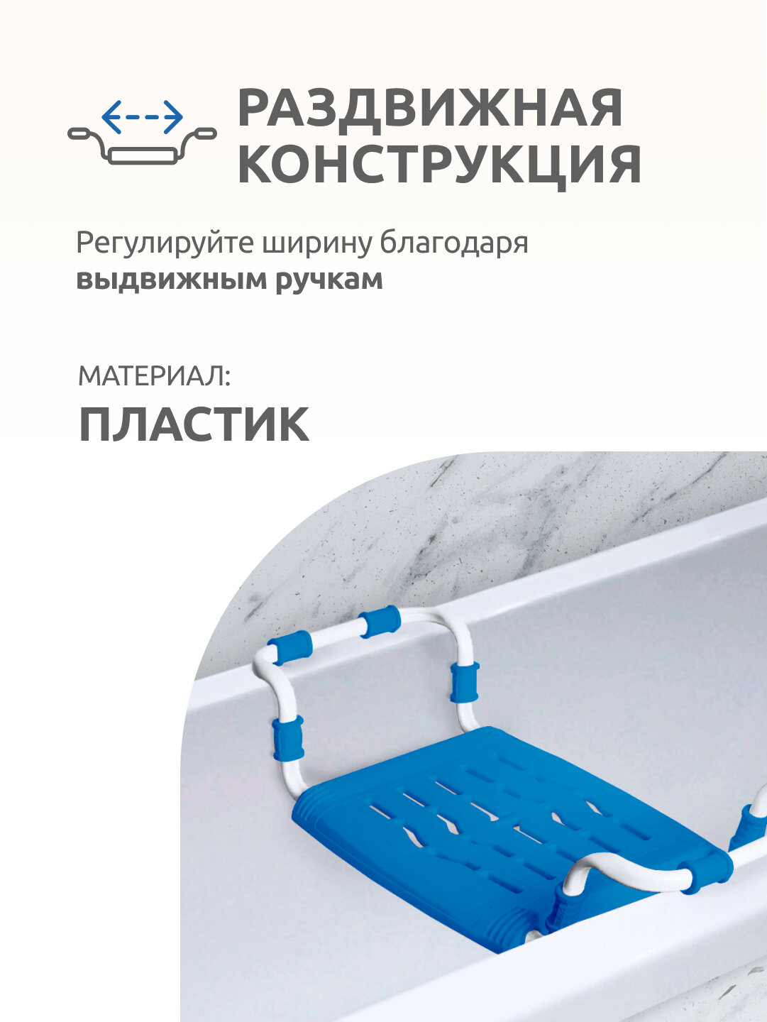 Сиденье в ванну Ника пластмассовое, раздвижное (СВ5/Б белый)