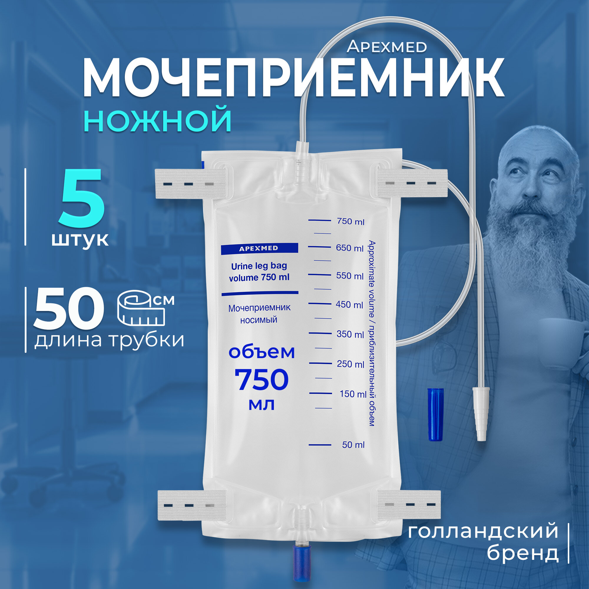 Мочеприемник ножной Apexmed 750 мл, носимый, трубка 50 см, 5 шт интересное: