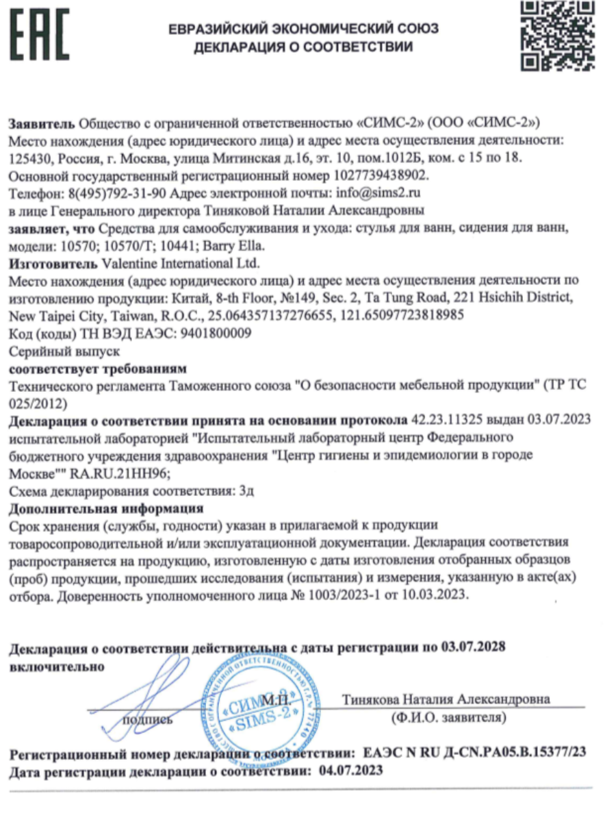 Купить Стул для ванной и душа для пожилых Barry Ella