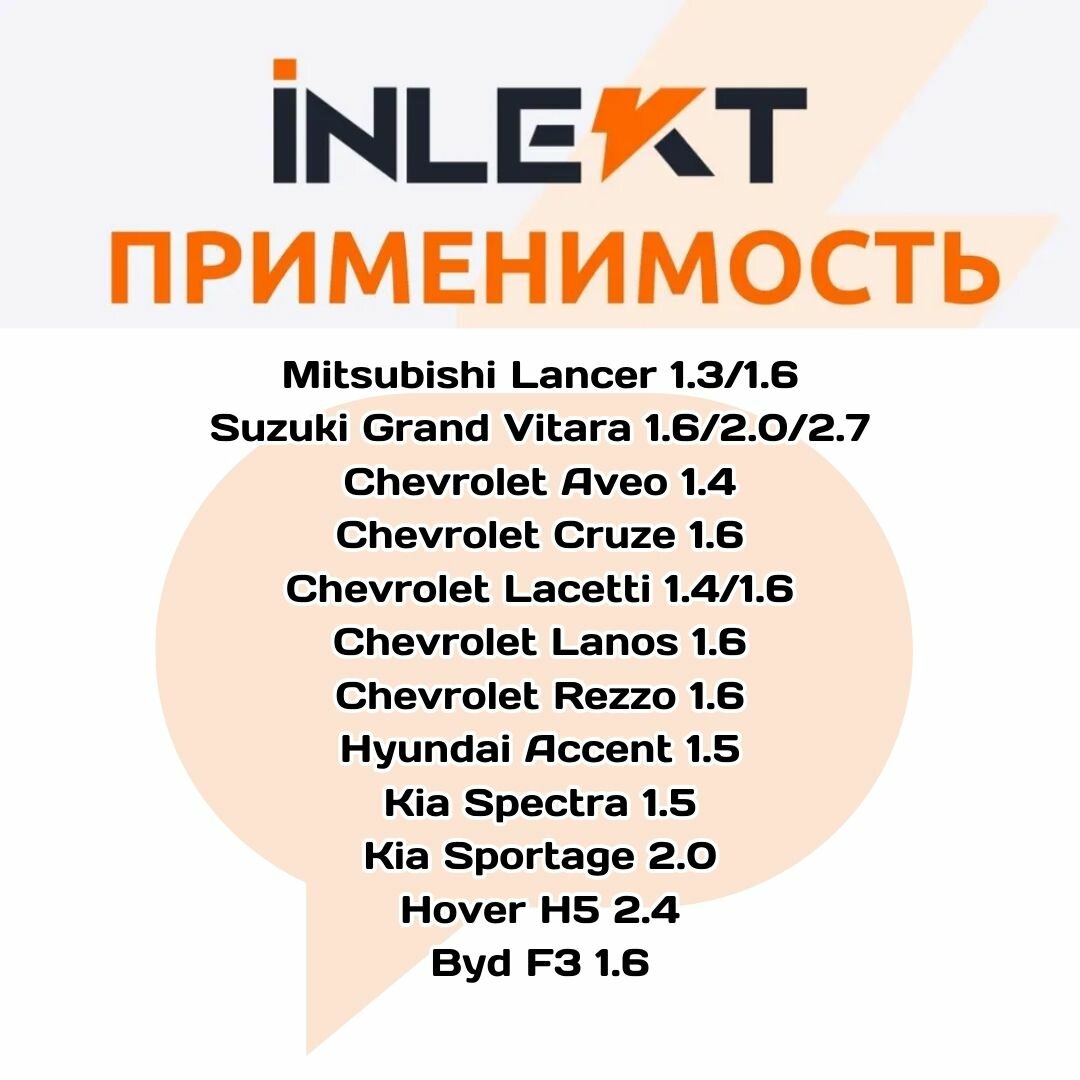 | Модель автомобиля | BYD F3 / Chery Tiggo / Chevrolet Aveo / Chevrolet Lanos / Great Wall Hover / Hyundai Accent / Hyundai Elantra / Hyundai Getz / Hyundai Lantra / Hyundai Sonata / Hyundai Tucson / Hyundai i30 / Kia Ceed / Kia Cerato / Kia Rio / Kia Sportage / Mazda 2 / Mazda 3 / Mitsubishi Lancer / Mitsubishi Pajero / Nissan Almera / Nissan Cube / Nissan Micra / Nissan Pathfinder |