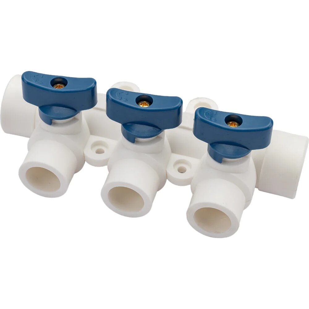 Коллектор PPR с шаровыми кранами RTP D25 mm x D20 mm x 3 выхода универсальный, полипропилен