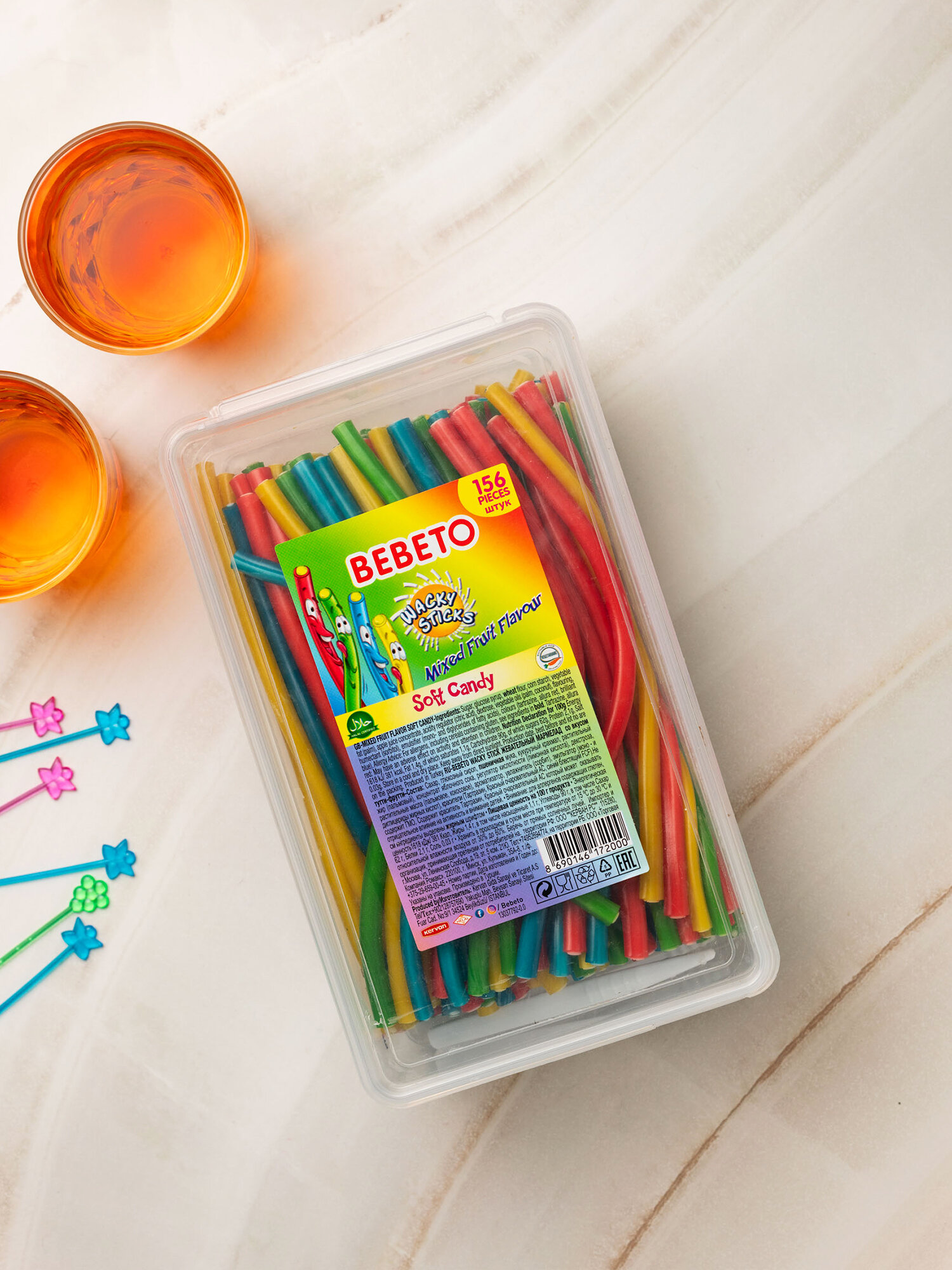 Мармелад жевательный BEBETO WACKY STICKS тутти-фрутти пластиковый контейнер 1326гр