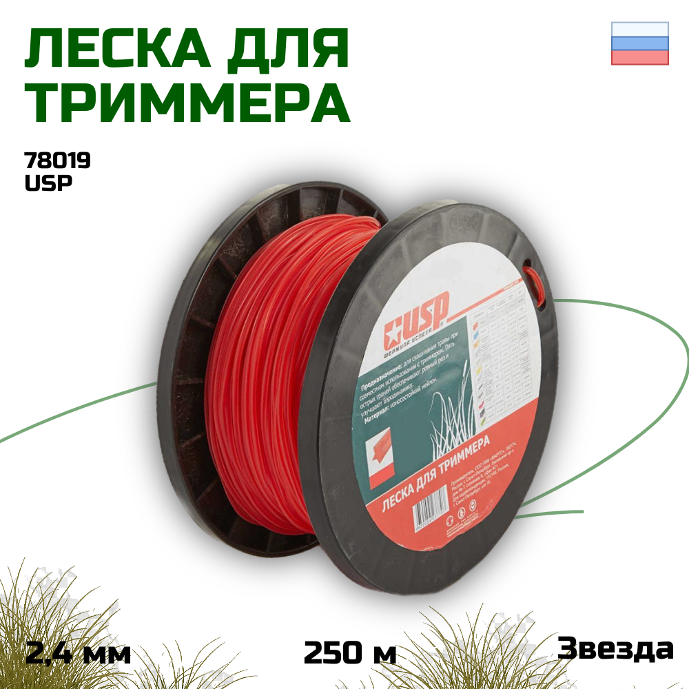 Леска для триммера 2.4мм звезда длина 250м USP 78019 интересное: