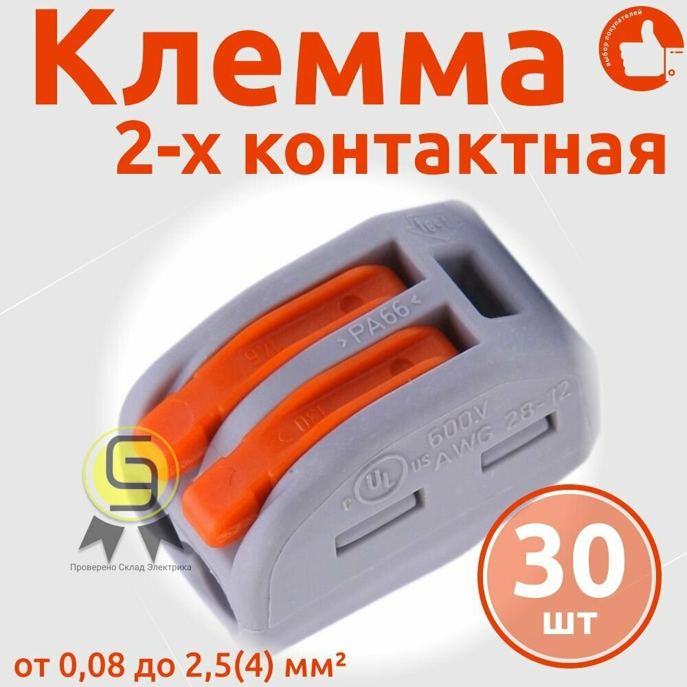 Клемма WAGO 222-412, двухконтактная, 30 шт