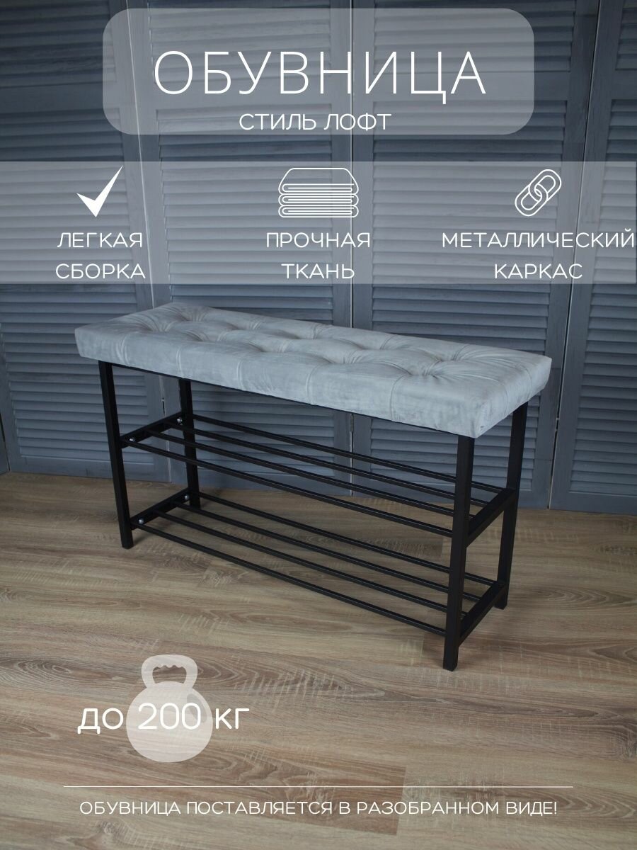 Не определен Этажерка для обуви с сиденьем (ЭТП3/С), 2 полки, 79×33×52,2 см, цвет серый