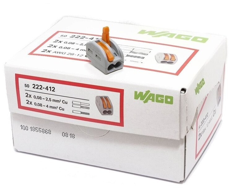 Купить электро соединитель проводов WAGO универсальный на 2 зажимной 222-412 ЛОТ 50 шт