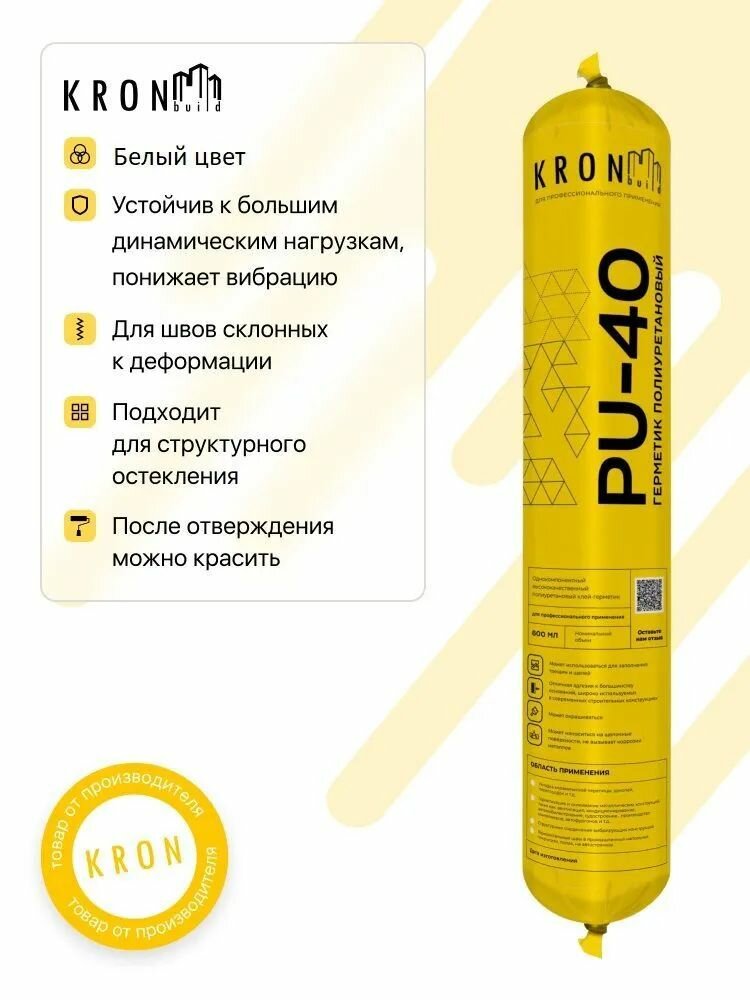Герметик Kronbuild PU-40, полиуретановый, 600мл, белый, для домостроения, ремонта дорог, машиностроения