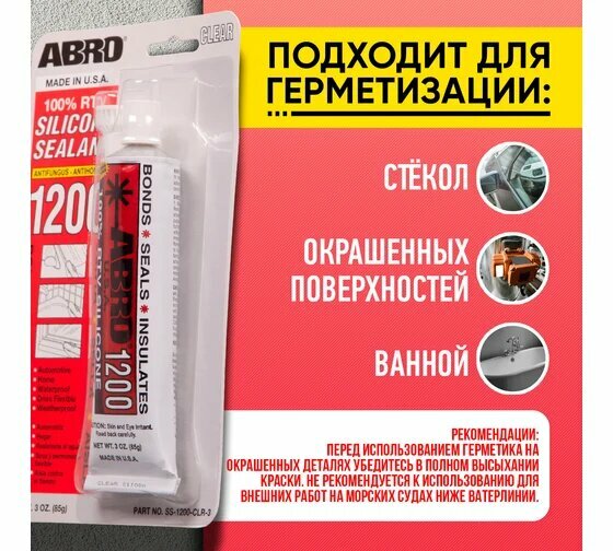 ABRO SS-1200-CLR-3 Герметик силиконовый прозрачный (85г) SS-1200-CLR-3 ABRO интересное: