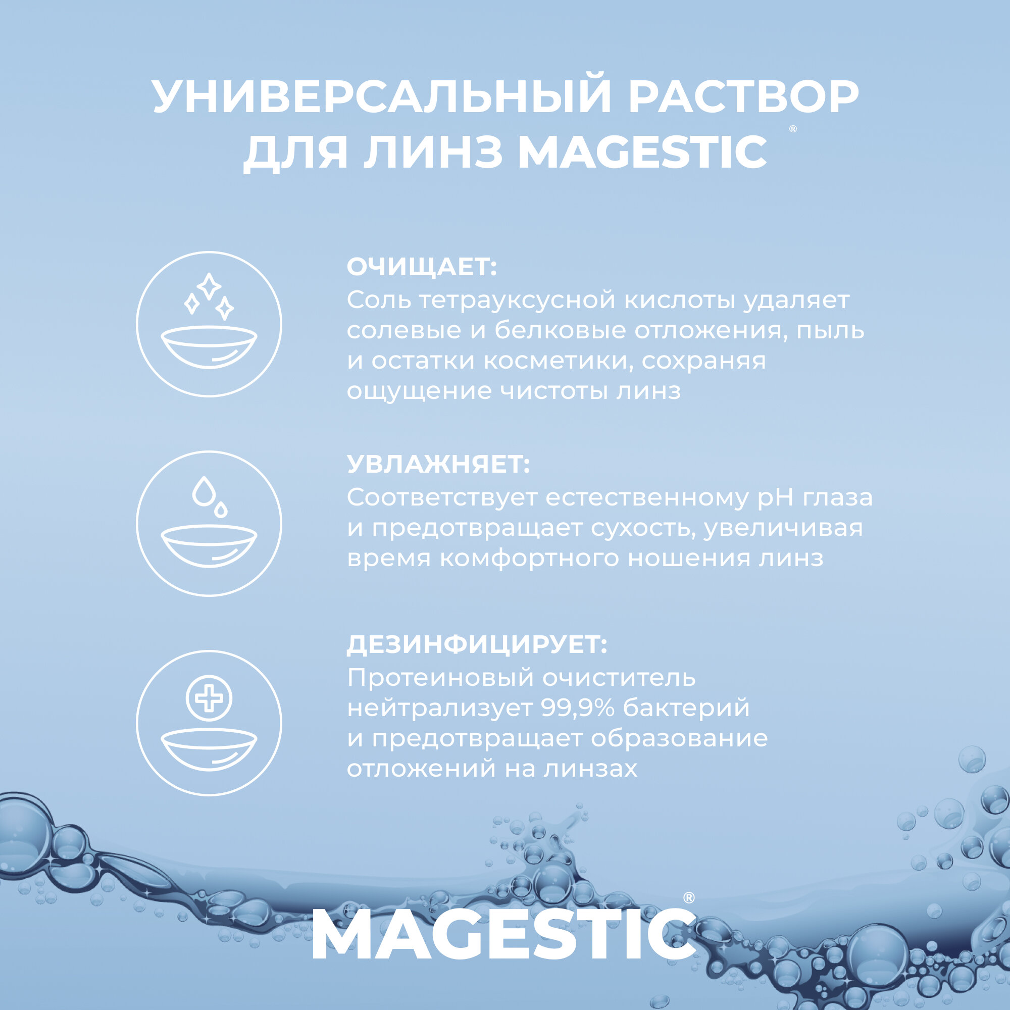 Раствор для прозрачных и цветных контактных линз MAGESTIC универсальный , 500 мл интересное: