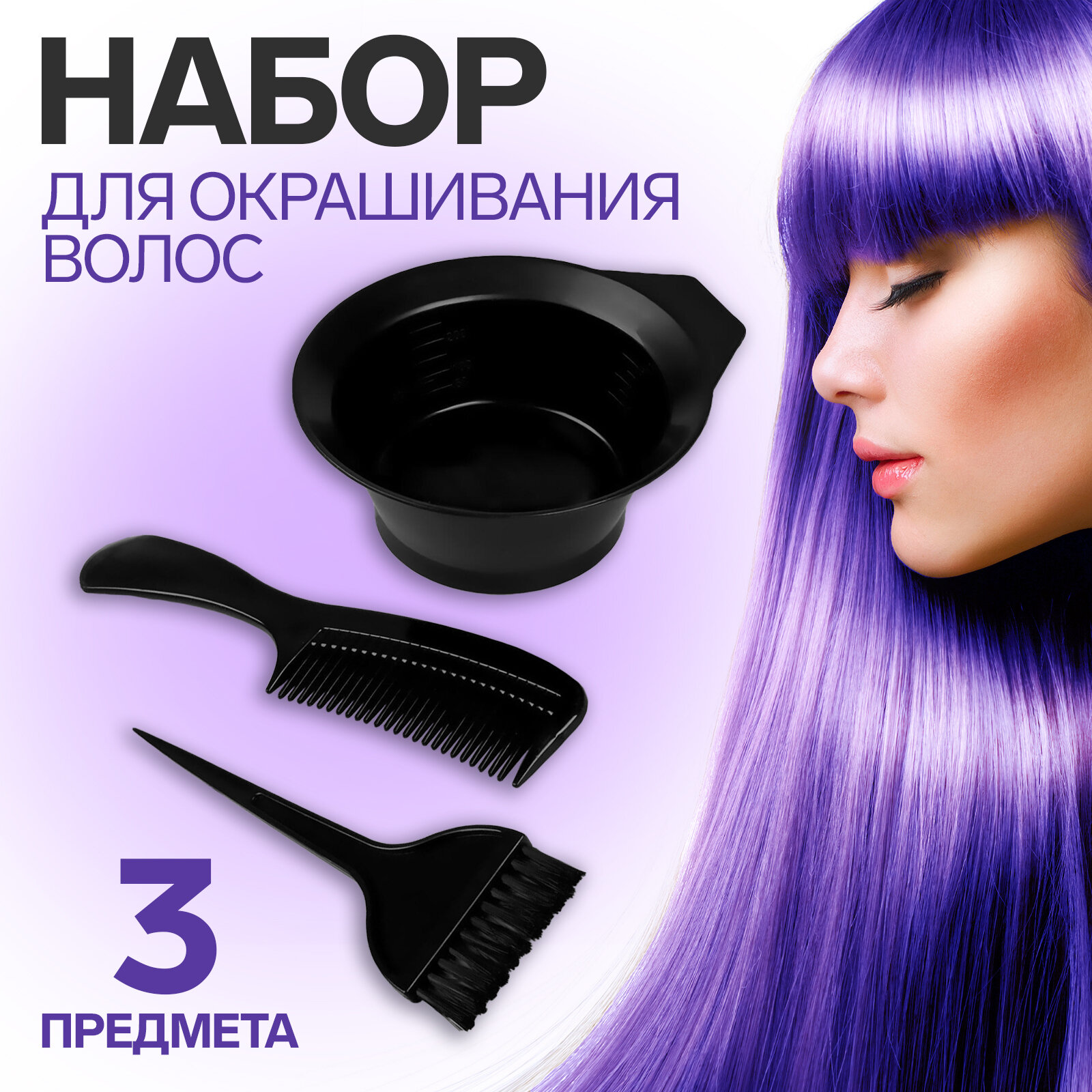 Набор для окрашивания, 3 предмета, цвет чёрный