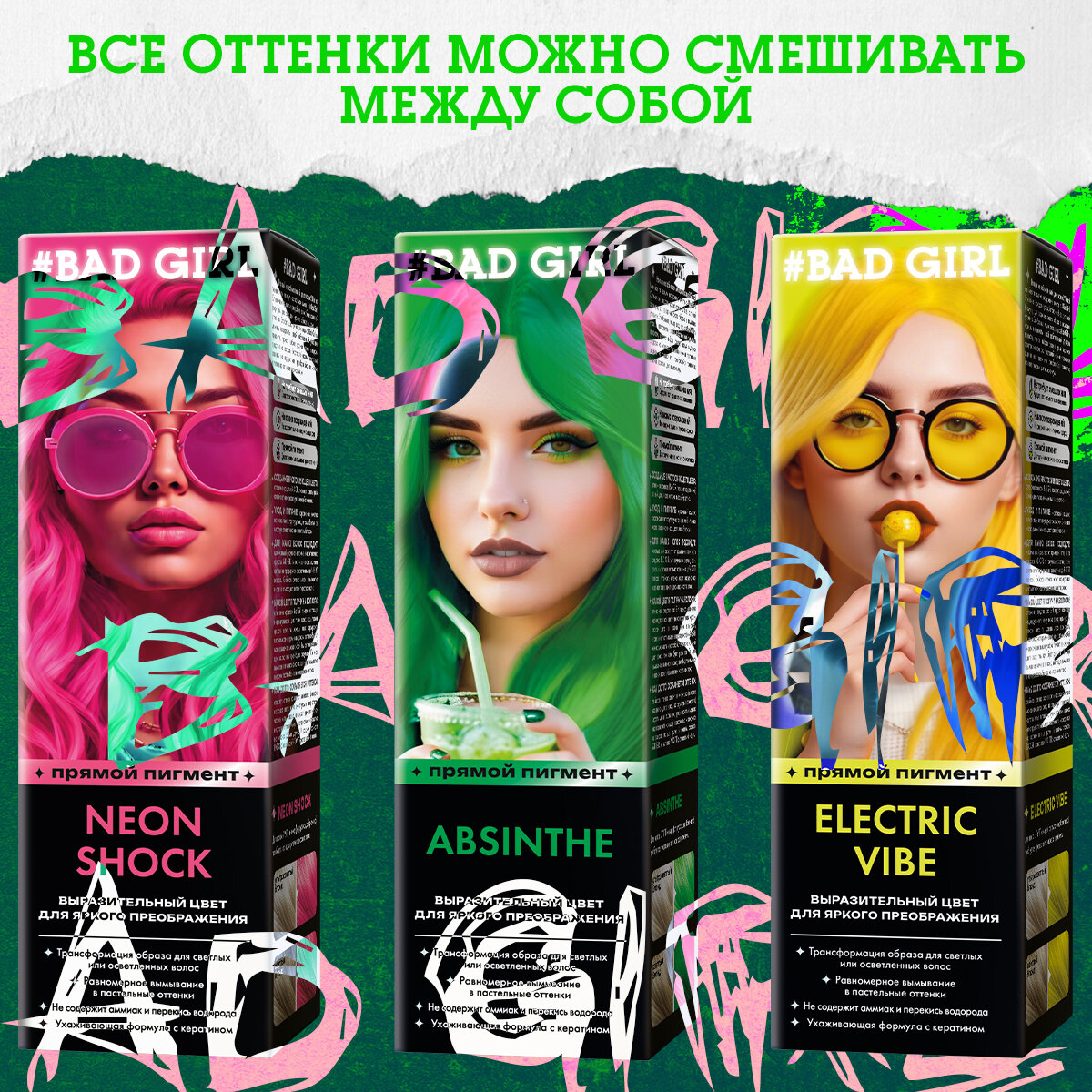 Купить Бэд Герл (Bad Girl) пигмент прямого действия Absinthe (неоновый зеленый) - 2 штуки