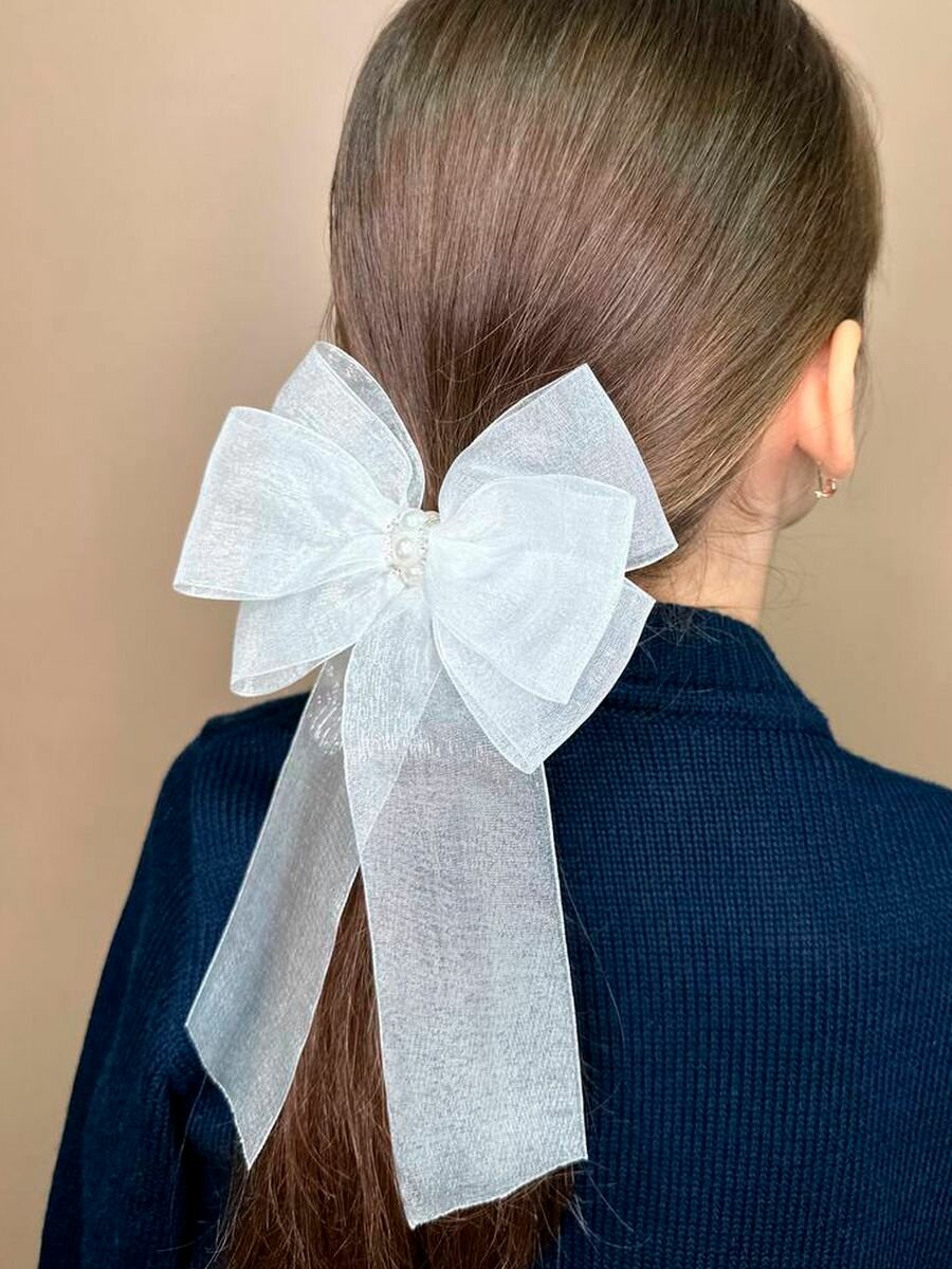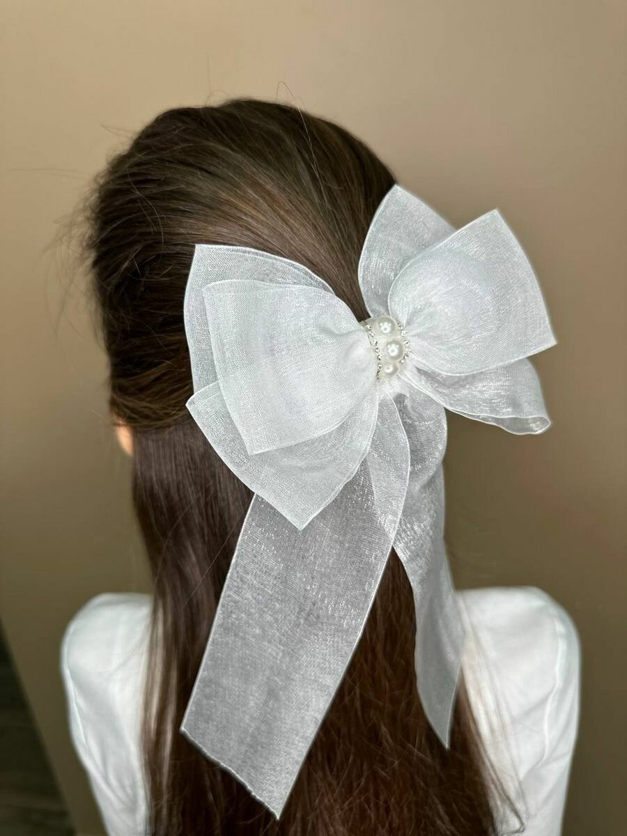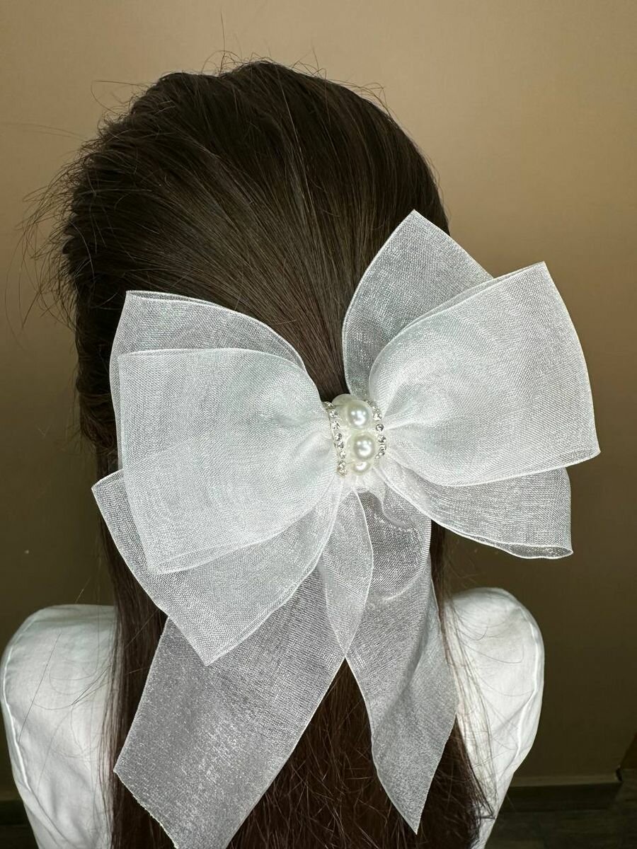 Бант школьный для волос QuisLife на резинке, белый, со стразами, 1 штука интересное: