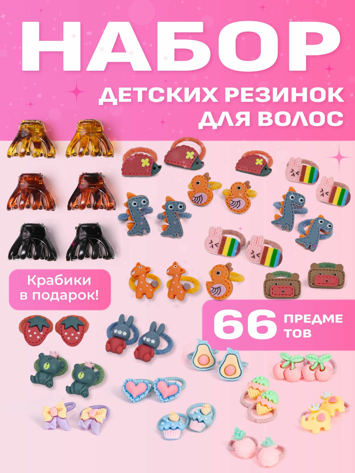 Резинки для волос детские 60 шт REVOLUT, крабики для волос маленькие 6 шт интересное: