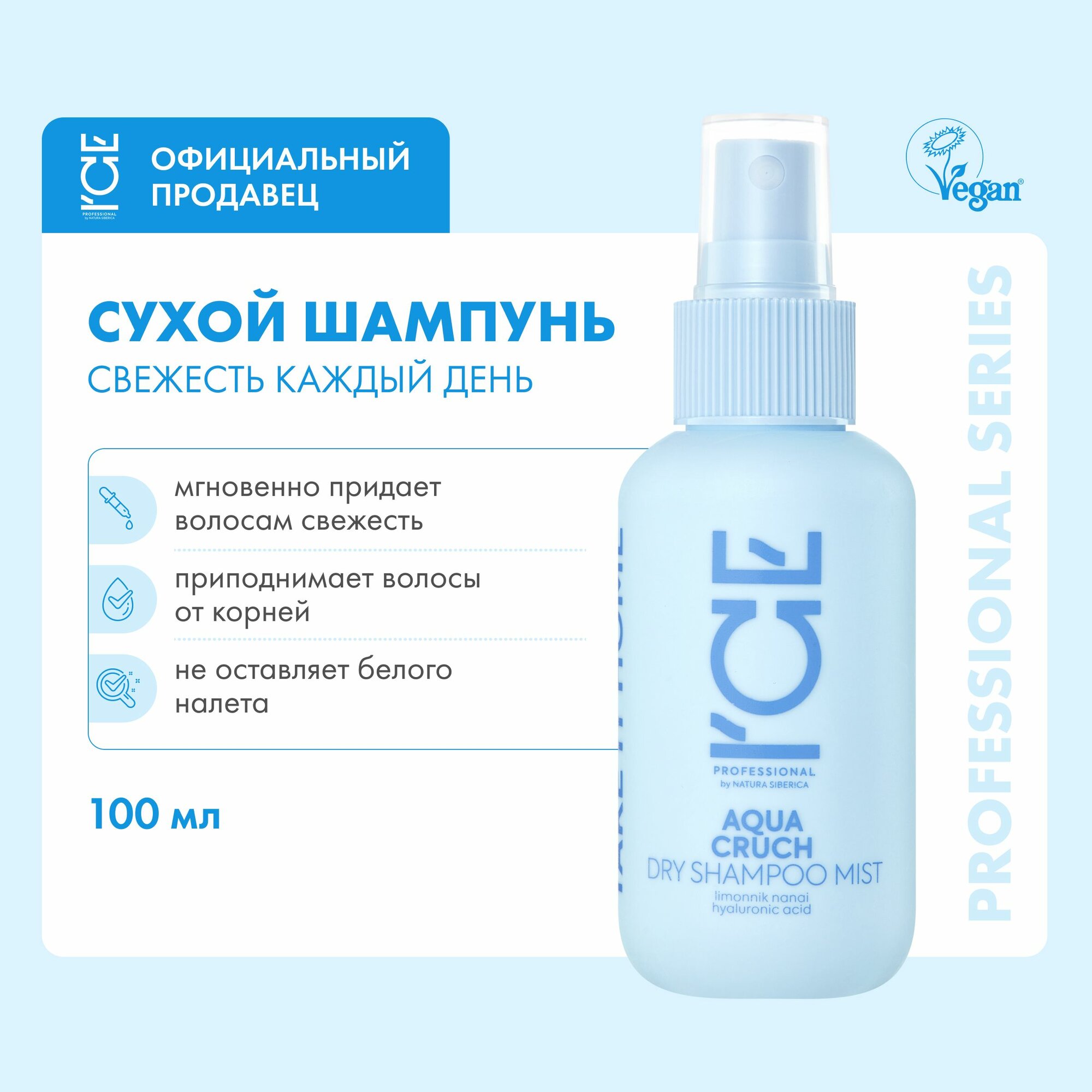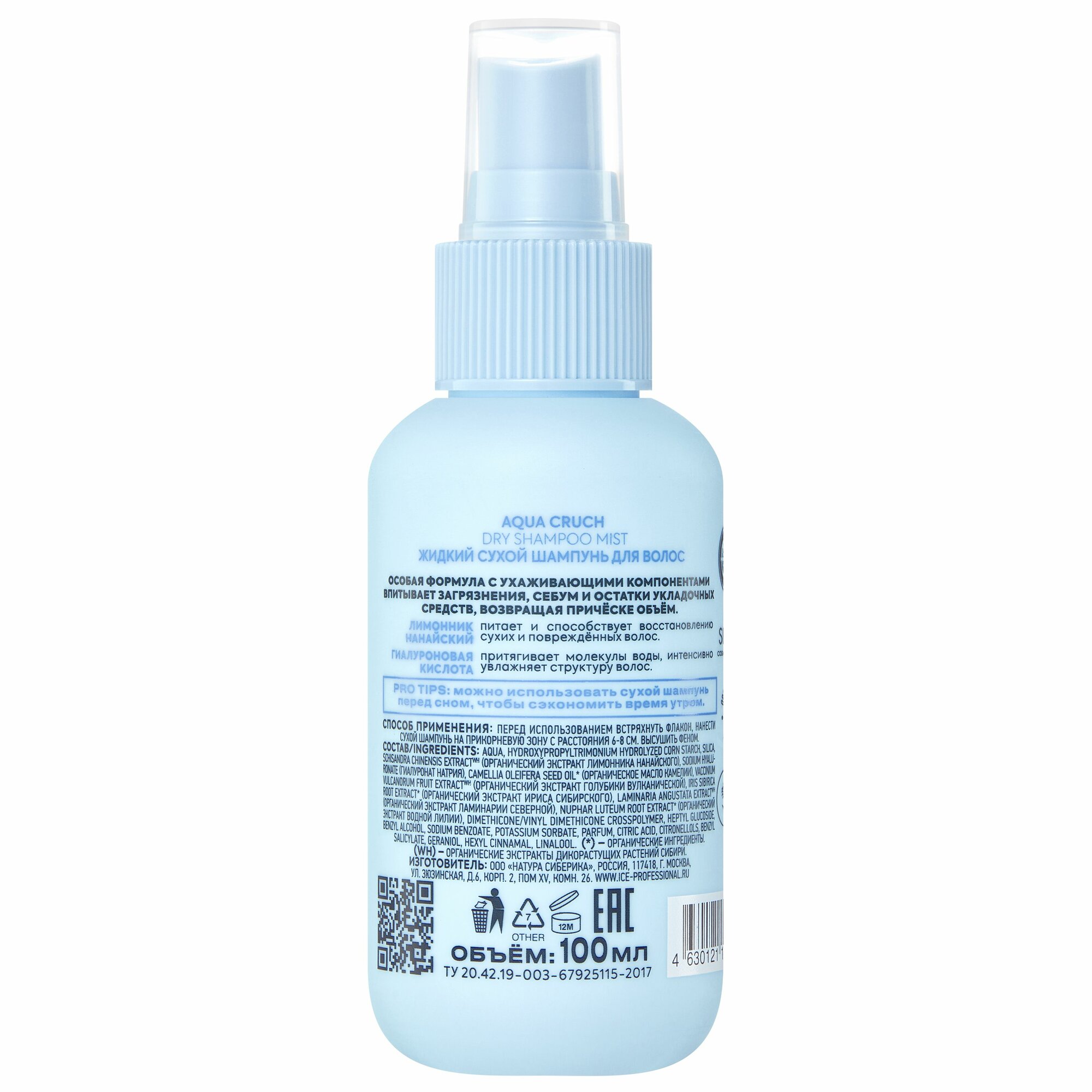 Natura Siberica Ice Professional - Aqua Cruch - Dry Shampoo Mist Жидкий сухой шампунь для волос "увлажняющий" для всех типов волос 100 мл.