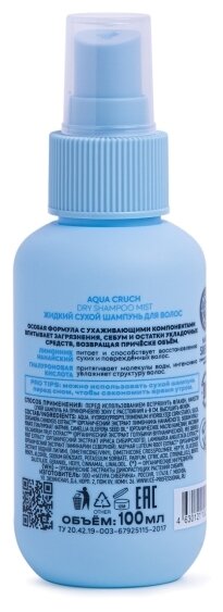 ICE by NATURA SIBERICA Жидкий сухой шампунь для волос Aqua Cruch Dry Shampoo Mist, 100 мл