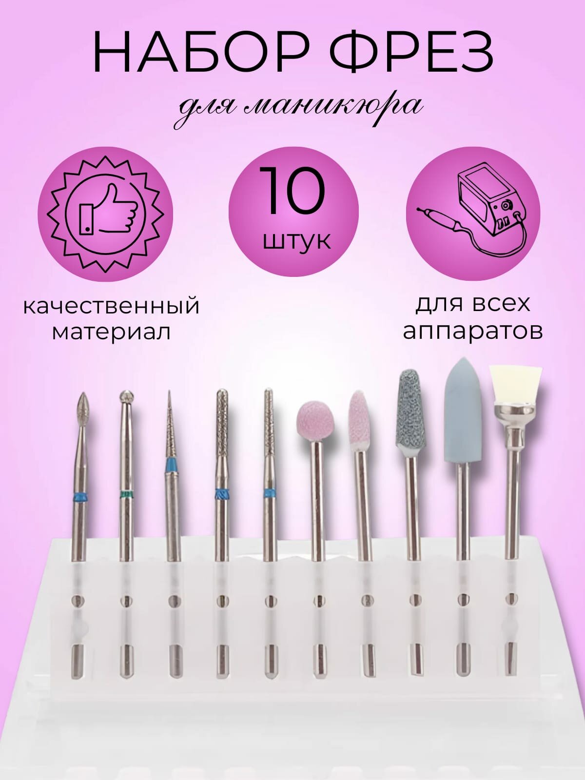 Набор алмазных фрез для маникюра и педикюра 10шт / подходит для любых аппаратов интересное: