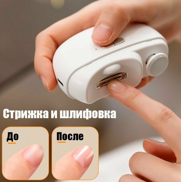 Мощный и безопасный триммер для ногтей/ Электронные ножницы для быстрого и аккуратного маникюра/ Маникюрные ножницы для детей и взрослых/Маникюрный аппарат для ногтей белого цвета/Аппарат для стрижки полировки ногтей.