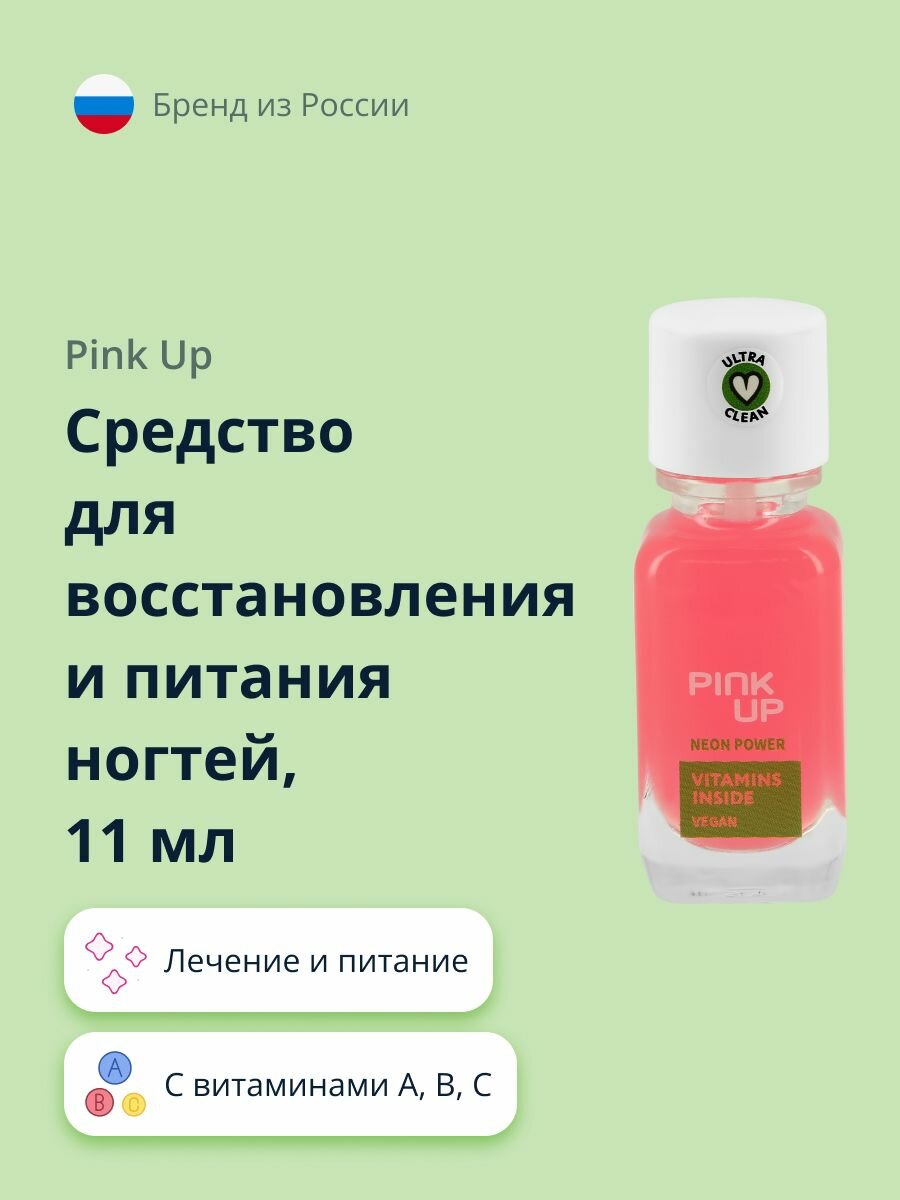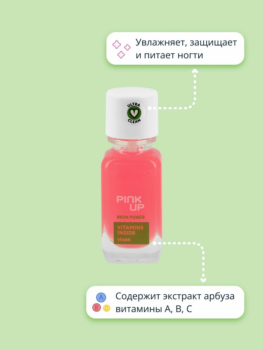 Купить PINK UP Средство для восстановления и питания ногтей NEON POWER с витаминами А, В, С и экстрактом арбуза, 11 мл