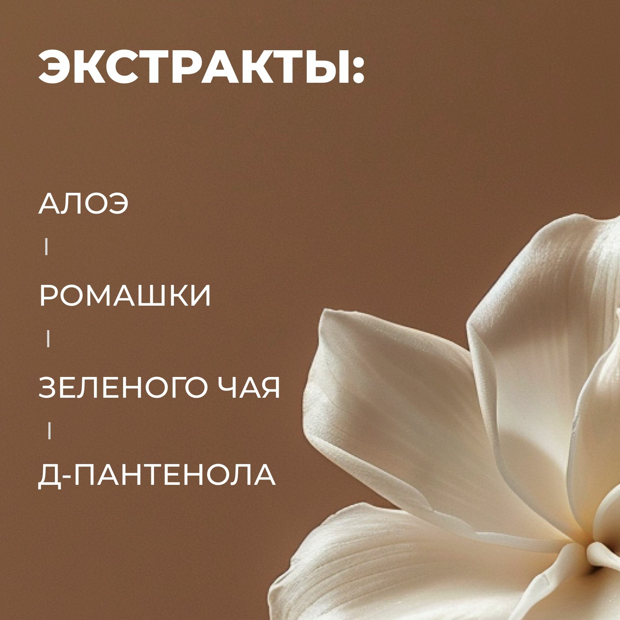 | Масла и экстракты | экстракт алоэ / экстракт зеленого чая / экстракт ромашки / экстракт виноградной косточки |