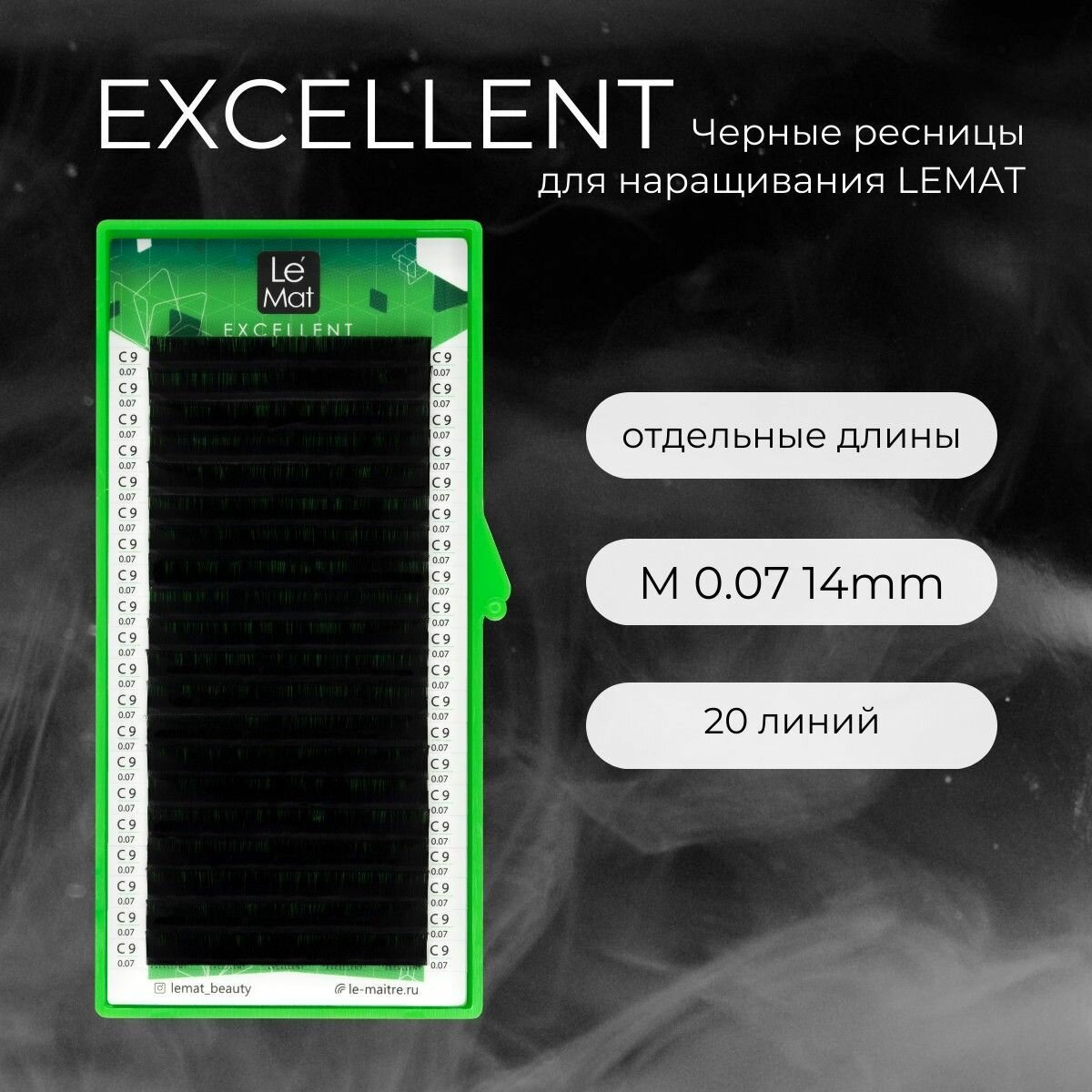 Ресницы для наращивания черные M 0.07 14 mm "Excellent" 20 линий Le Maitre / Le Mat (Ле Мат / 14 мм)
