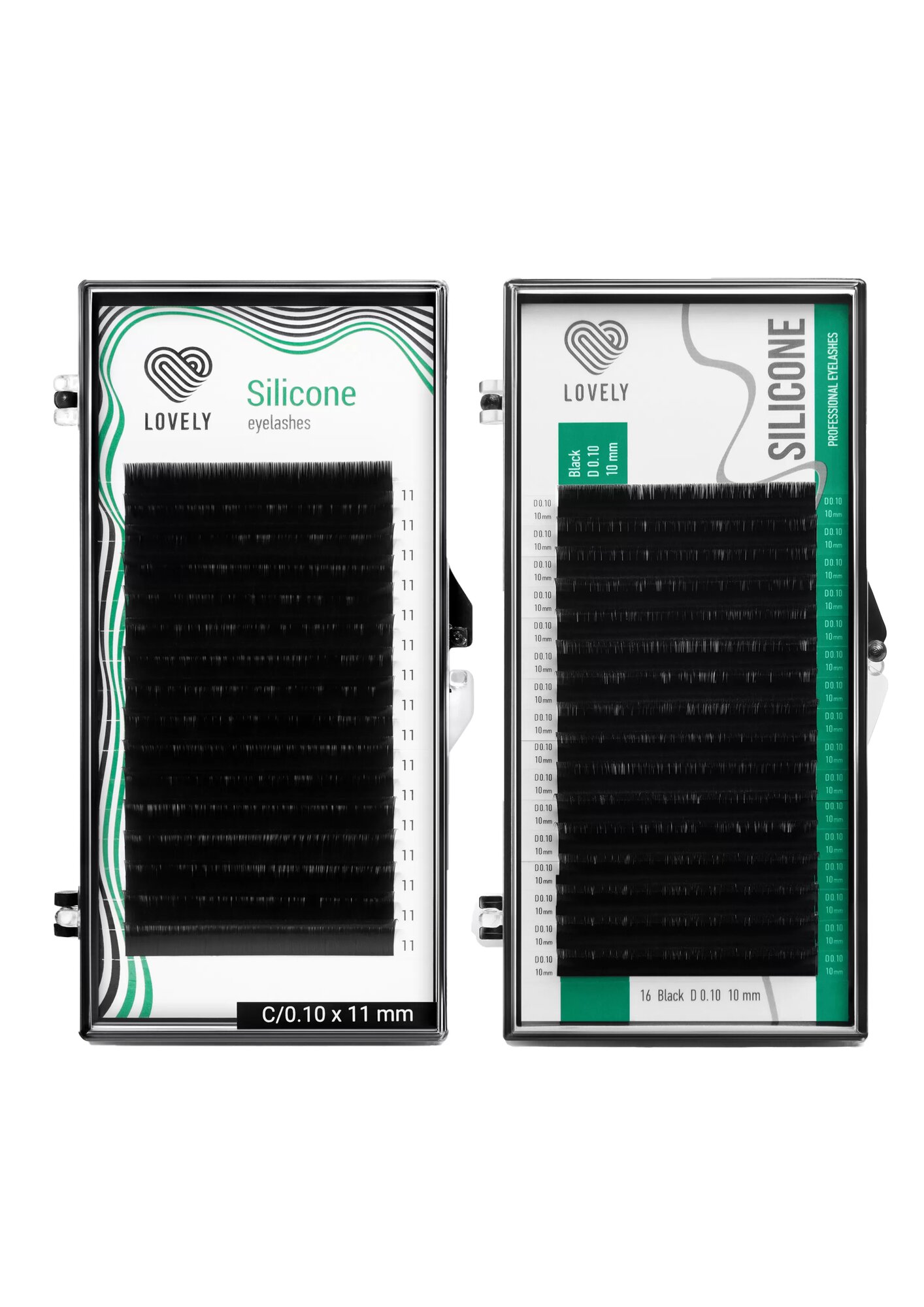 LOVELY Ресницы черные Silicone - 20 линий, MIX (изгиб C; толщина 0,10; длина 8-15)