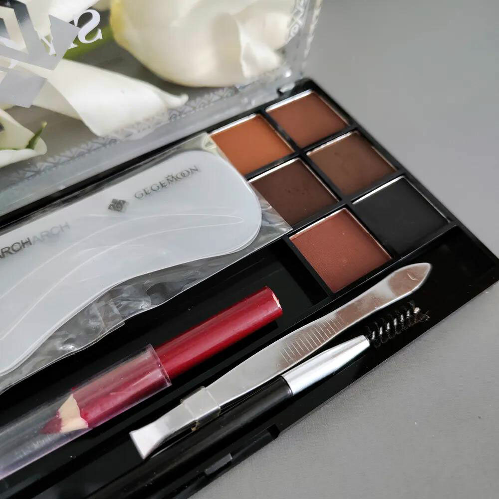 Набор для ухода за бровями GEGEMOON: тени 12 цветов, карандаш-подводка, кисть, щеточка, трафареты и пинцет