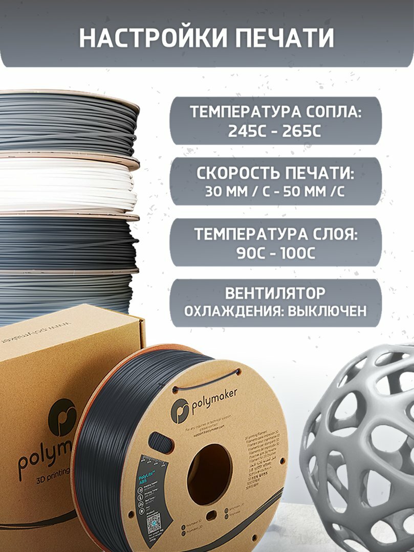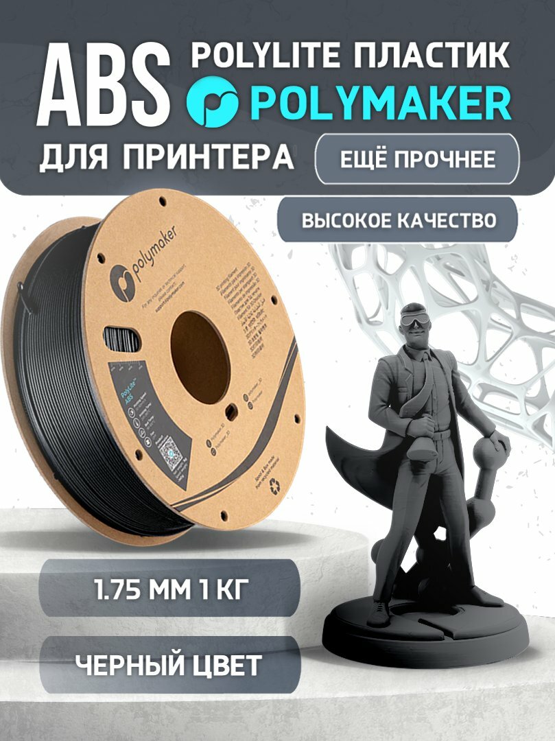ABS PolyLite пластик Polymaker для 3D принтера, 1.75 мм, Чёрный, 1 кг интересное: