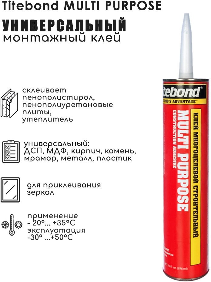 Монтажный клей универсальный Titebond Multi Purpose, жидкие гвозди 296 мл, 2шт