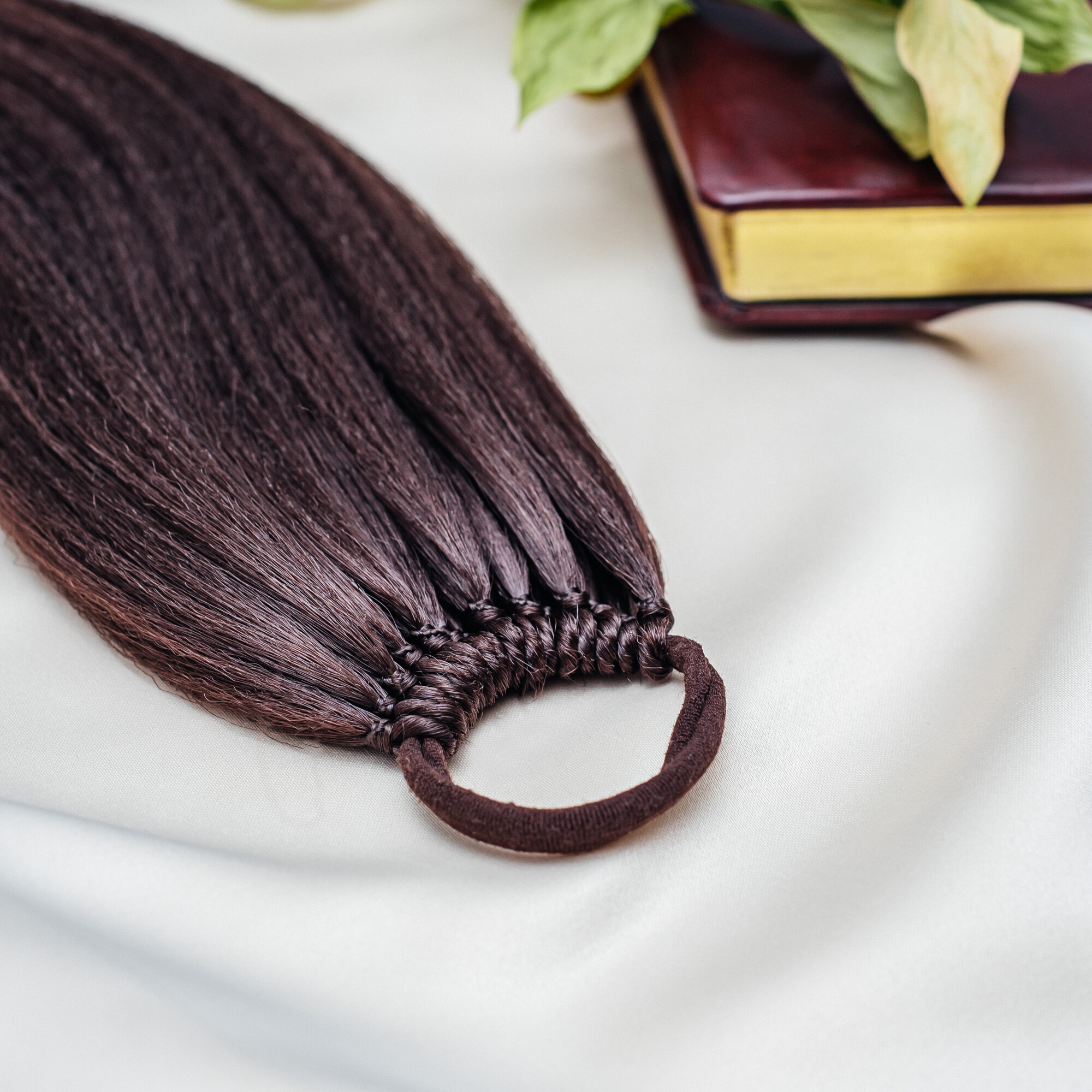 Хвост каштан на резинке. Коричневый. Афростиль. Искусственные волосы. Термостойкие. 70 см., 130 гр.