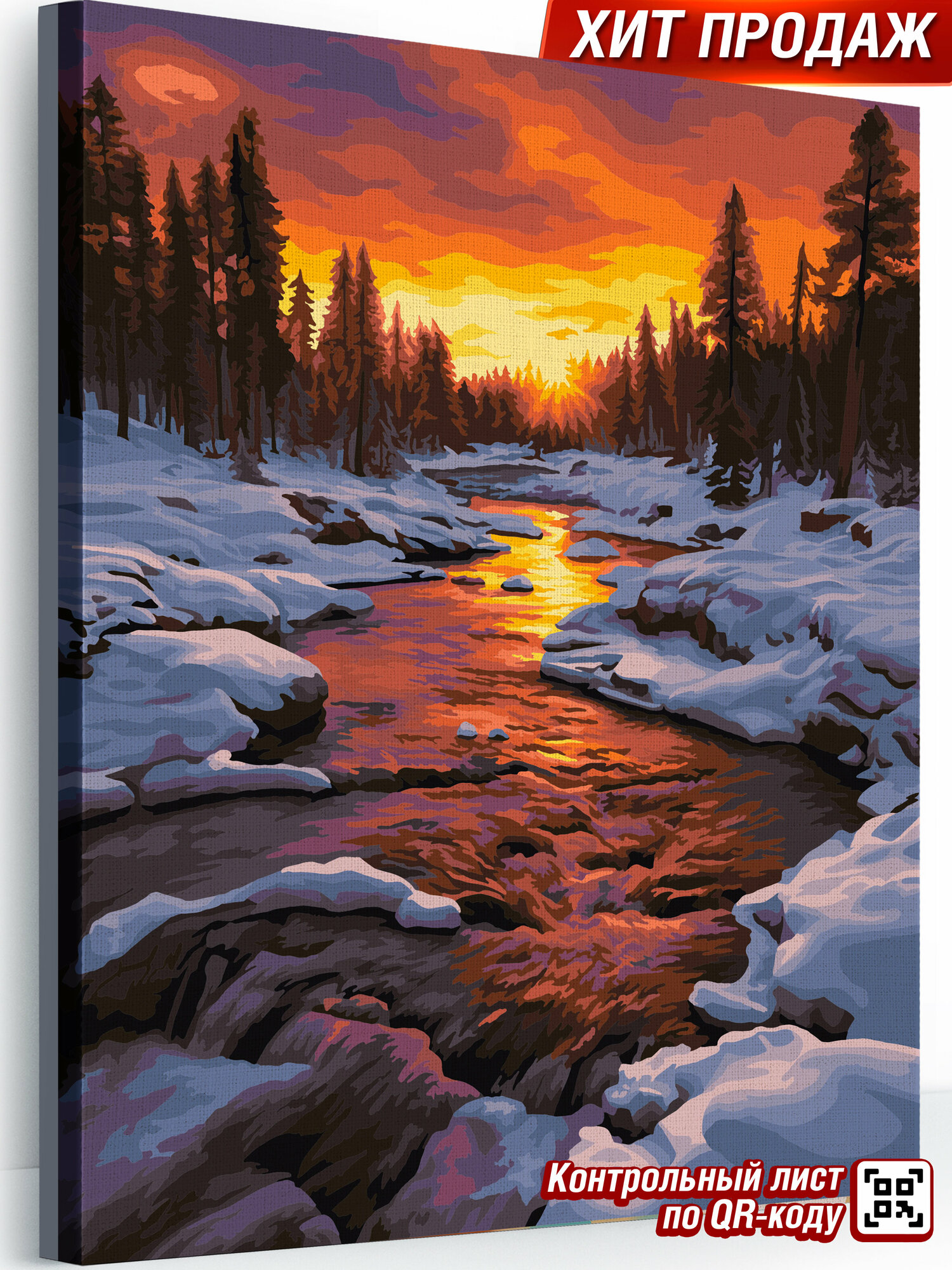 Купить Картина по номерам на холсте 40х50 см "Зимний закат" деревянный подрамник