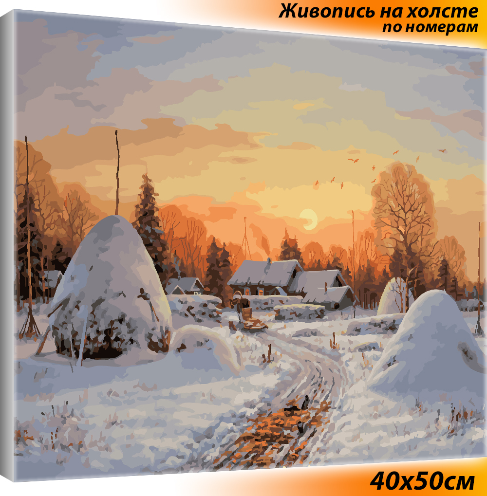 Купить Картина по номерам на холсте Белоснежка "Зимние сумерки" / Живопись 40х50 см.