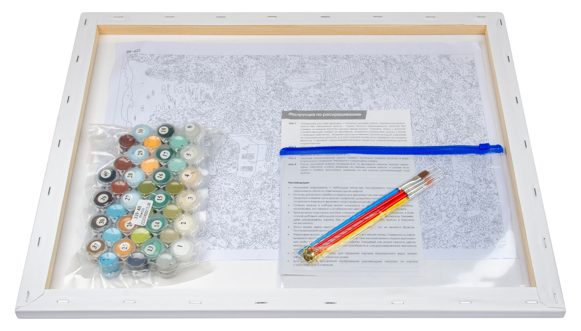 | Особенности | быстросохнущие краски / кисти в комплекте / краски в комплекте / репродукция картины / с цифрами / со смешиванием красок |