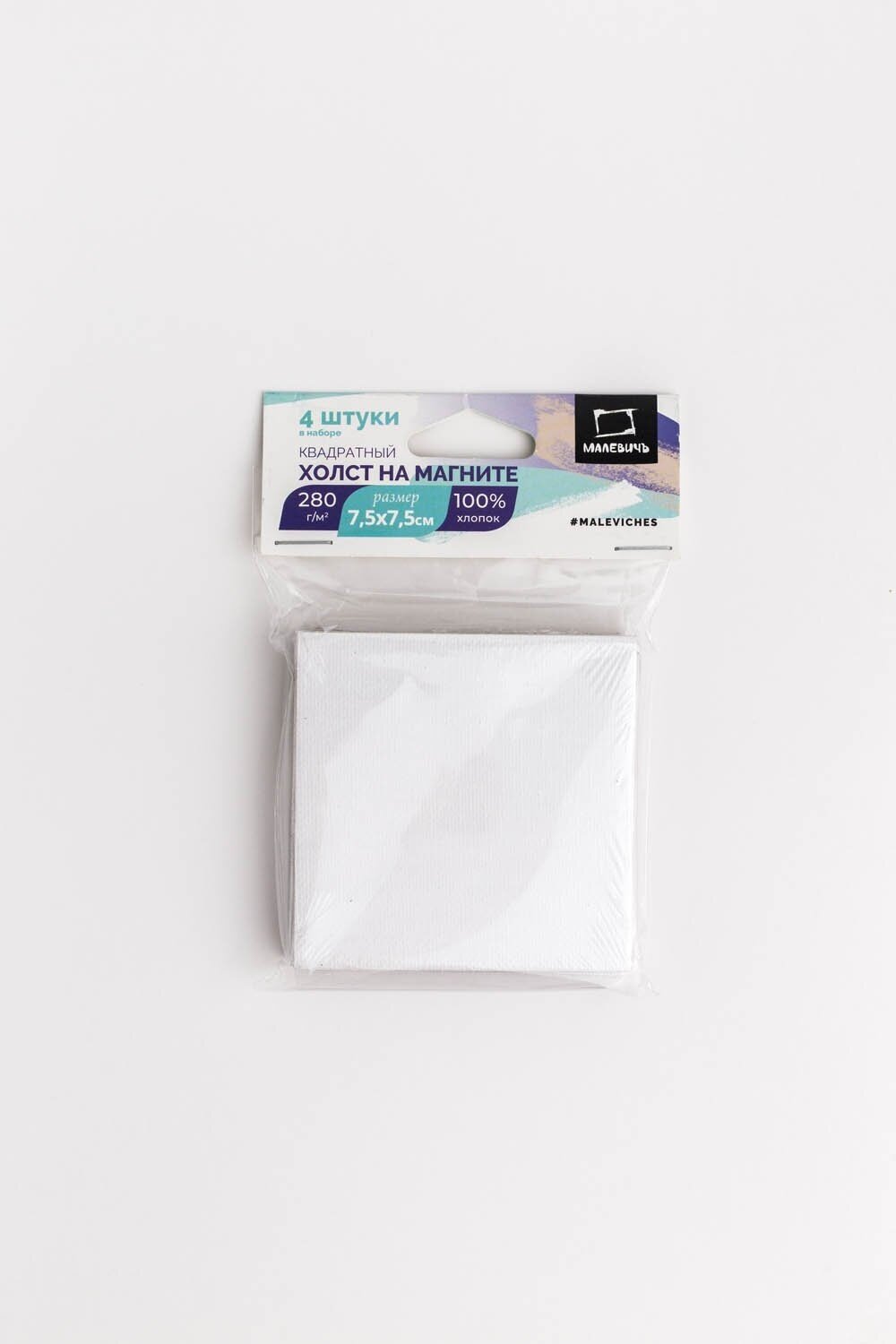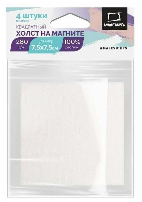 Купить Набор холстов-магнитов Малевичъ, хлопок, квадратные 7,5х7,5 см (4 шт)